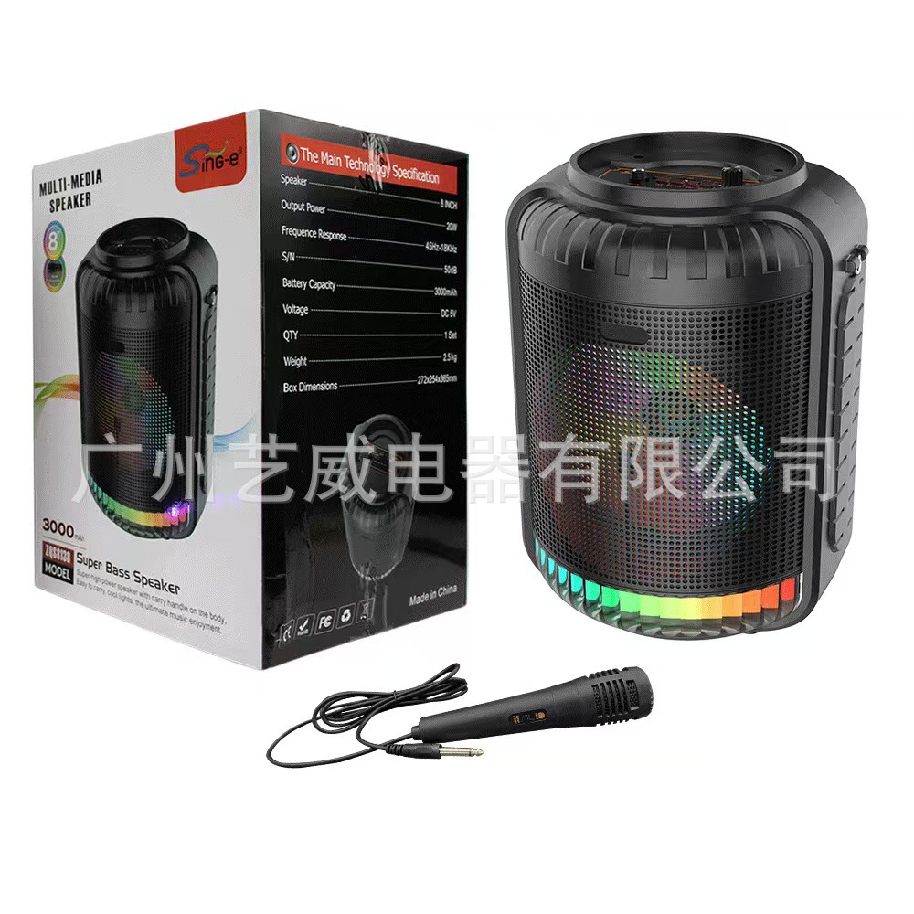 With BT/FM/USB/TF card /MIC, no display, USB with 5V boost, no remote control, with lithium battery protection, microphone base external installation, without wireless mic function, potentiometer volume, box function, with magic color, magic color is controlled by M key