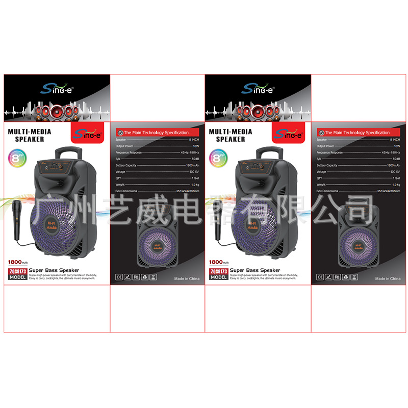 + With lithium protection, microphone function, single power amplifier, potentiometer volume, box function, with magic color, magic color is controlled by MODE.