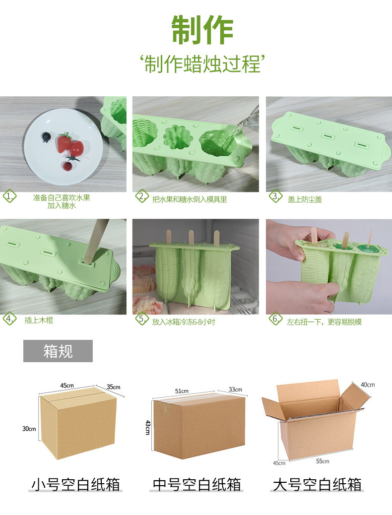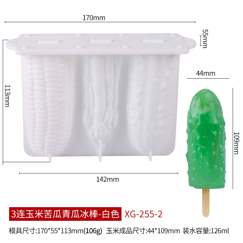 货号: SX 品牌: 诺莱焙 产品类别: 雪糕模 价格段: 10-20元 材质: 硅胶 是否有专利: 否 规格: 3连玉米芦笋青瓜冰棒-白色 XG-255 原产国/地区: 东莞 是否进口: 否 是否跨境出口专供货源: 是 重量: 0.3 kg/把