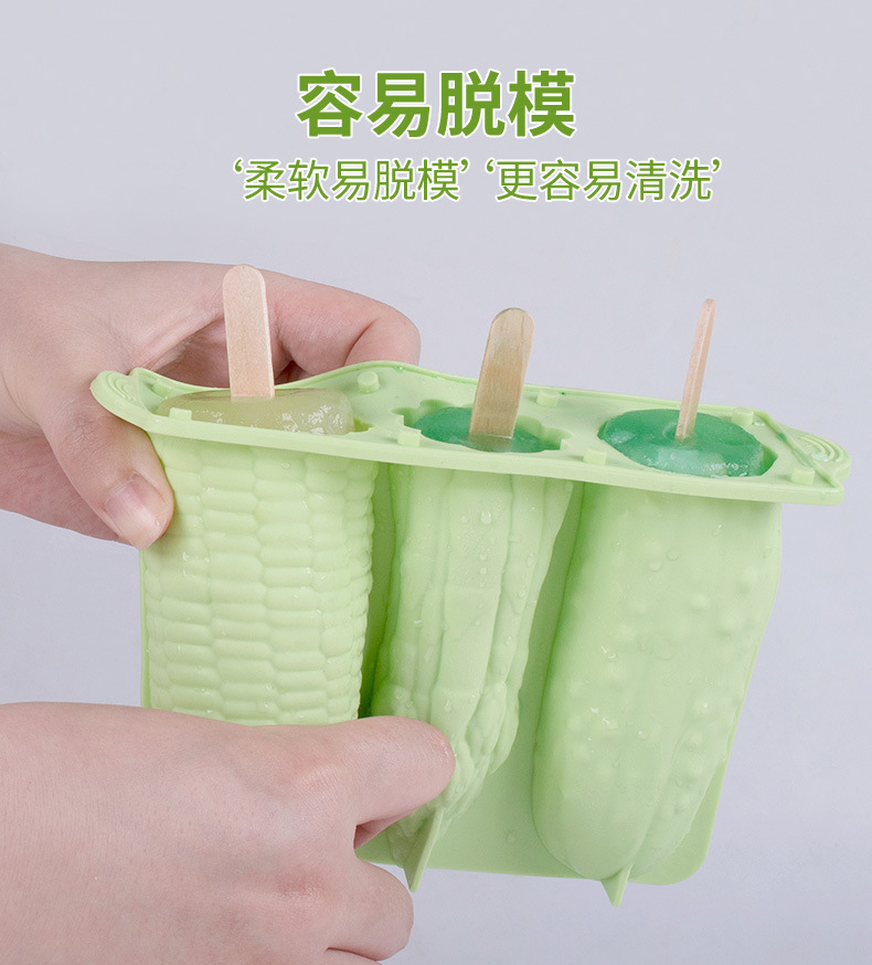 新款3连蔬菜雪糕硅胶模具家用自制儿童冰棒冰淇淋食品级磨具 投诉
