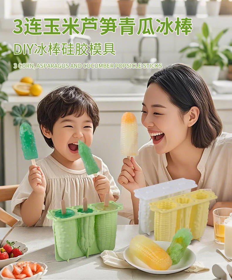 新款3连蔬菜雪糕硅胶模具家用自制儿童冰棒冰淇淋食品级磨具