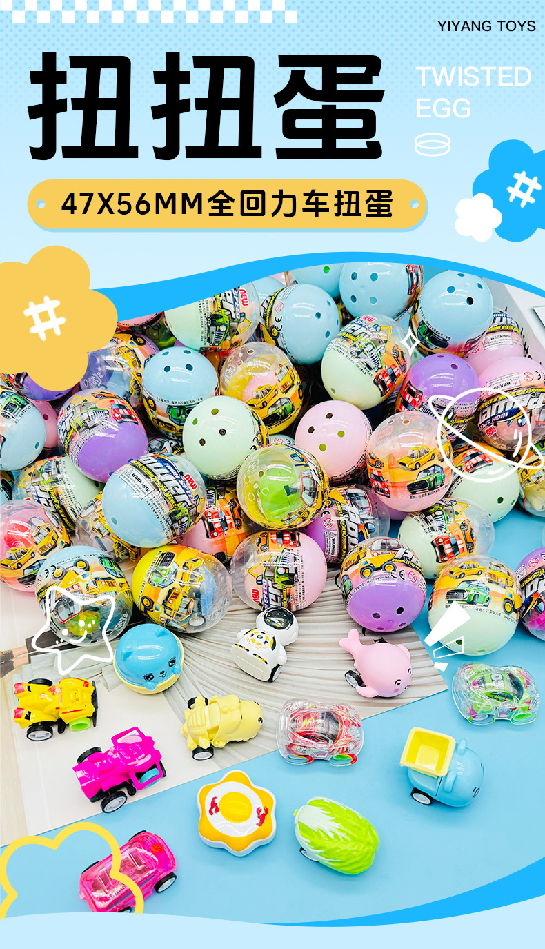 47*56mm覆膜混装扭蛋球2元扭蛋机礼品儿童玩具回力车扭蛋批发 English | 投诉