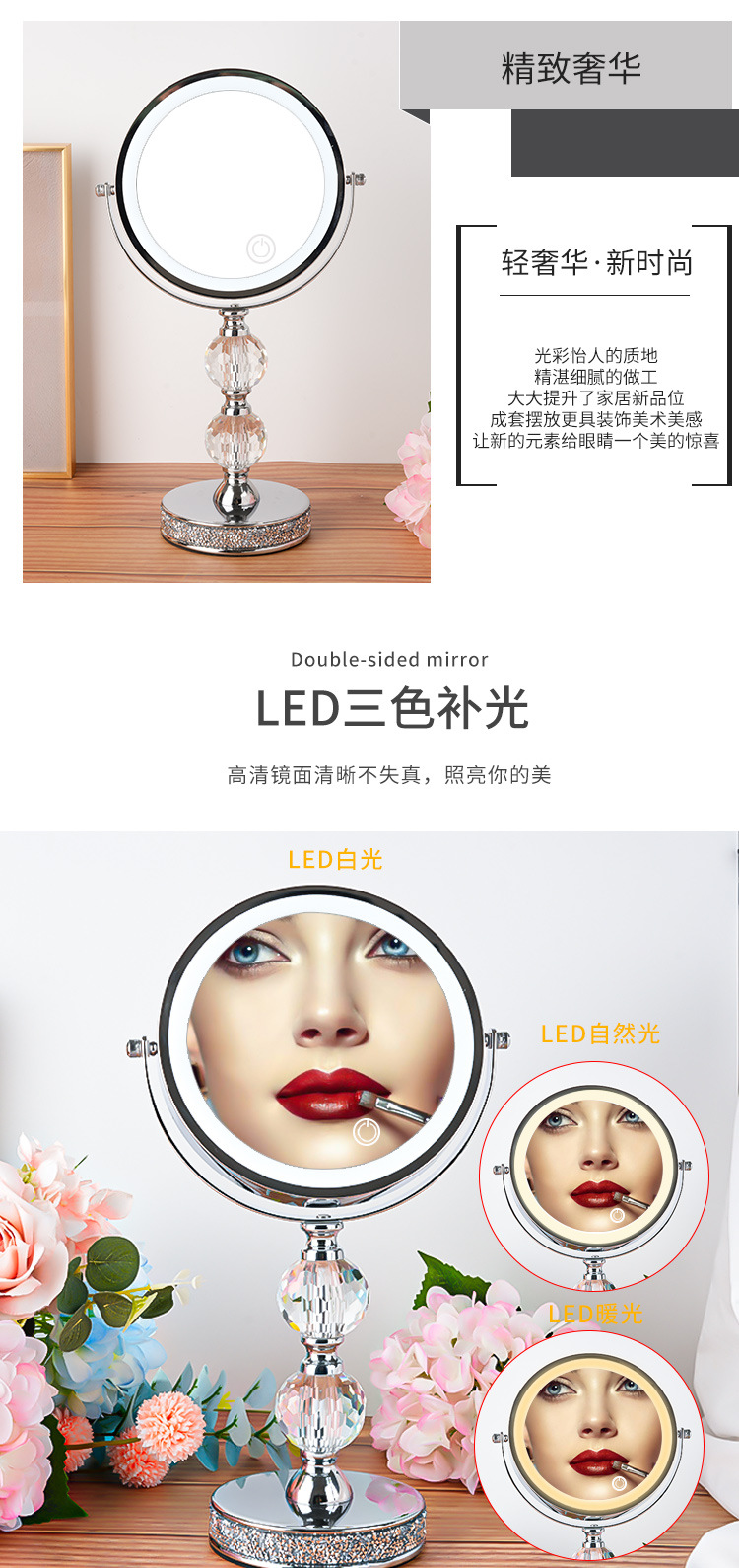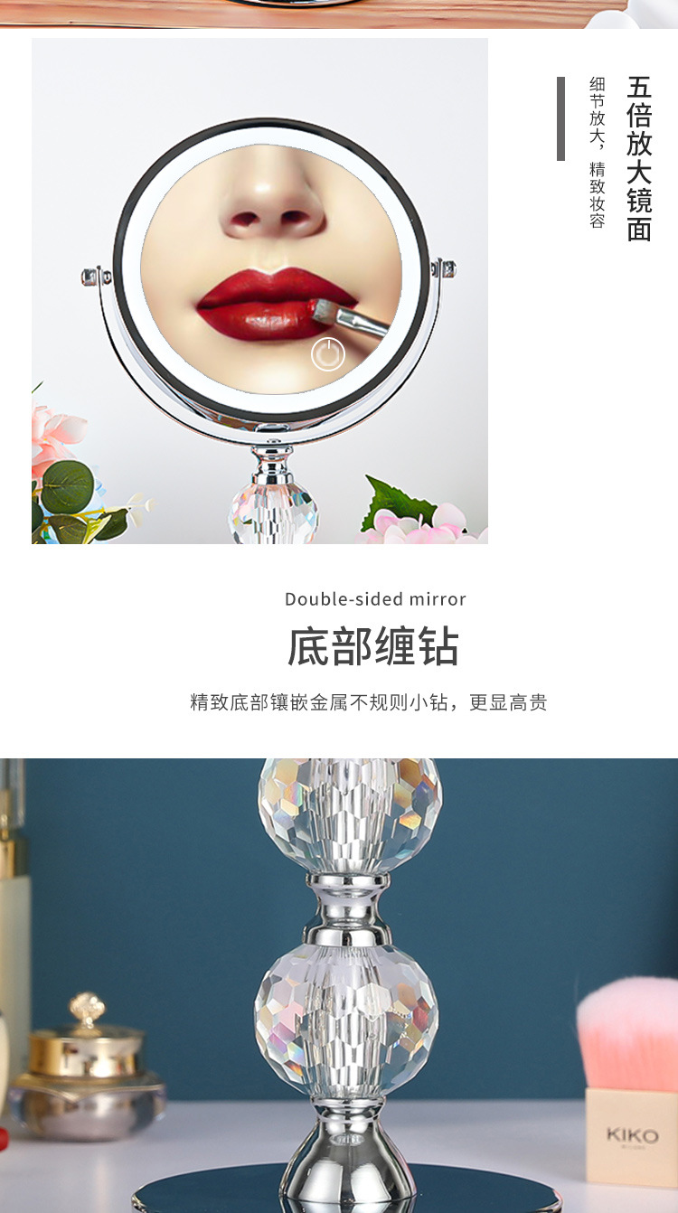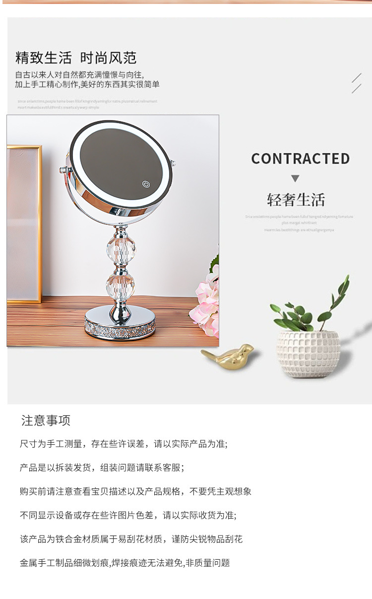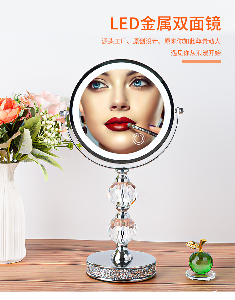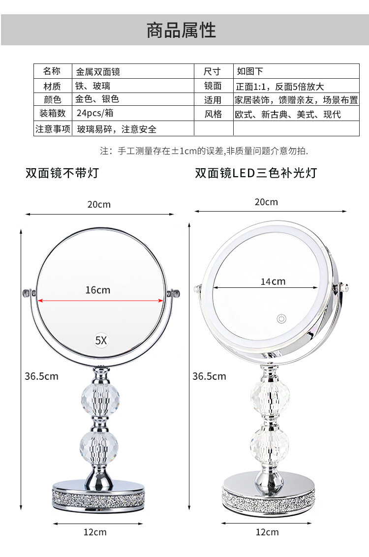 欧式高清台式化妆镜带灯LED双面镜公主镜美容镜桌面装饰高倍镜 投诉