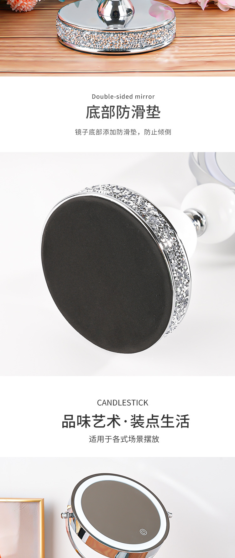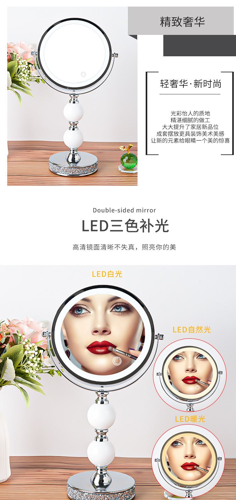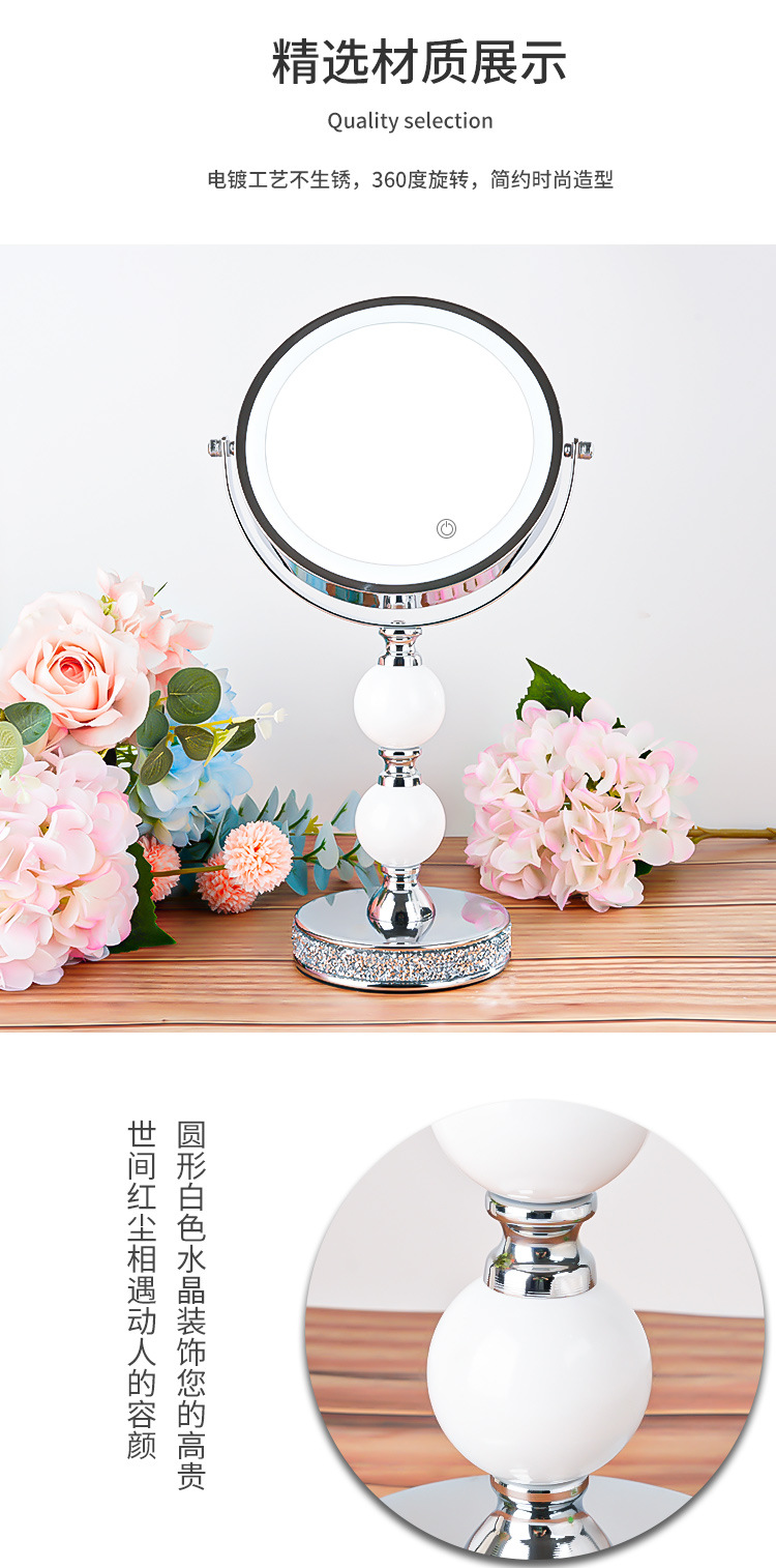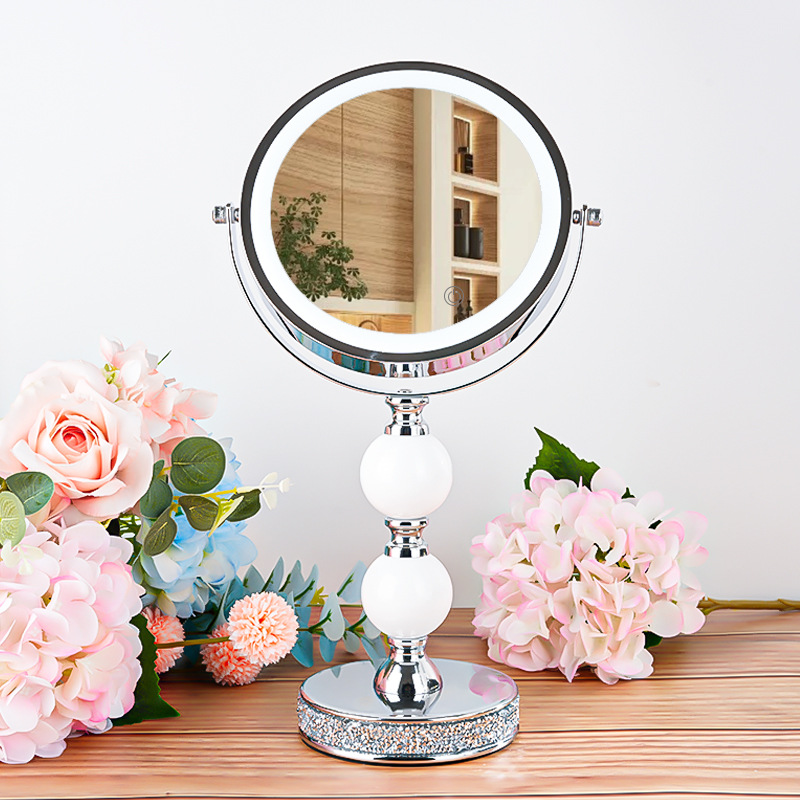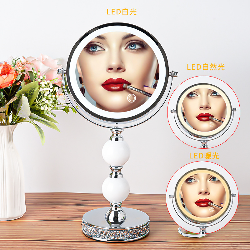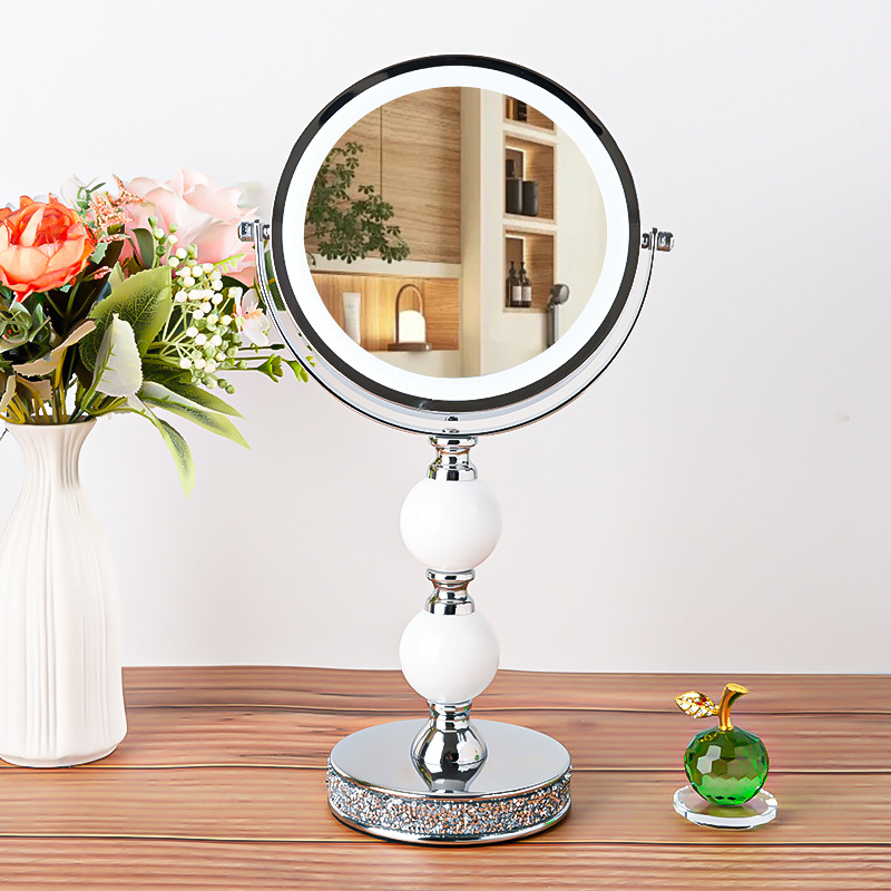 网红高倍带灯LED台式化妆镜补光灯双面镜公主镜美容镜桌面装饰