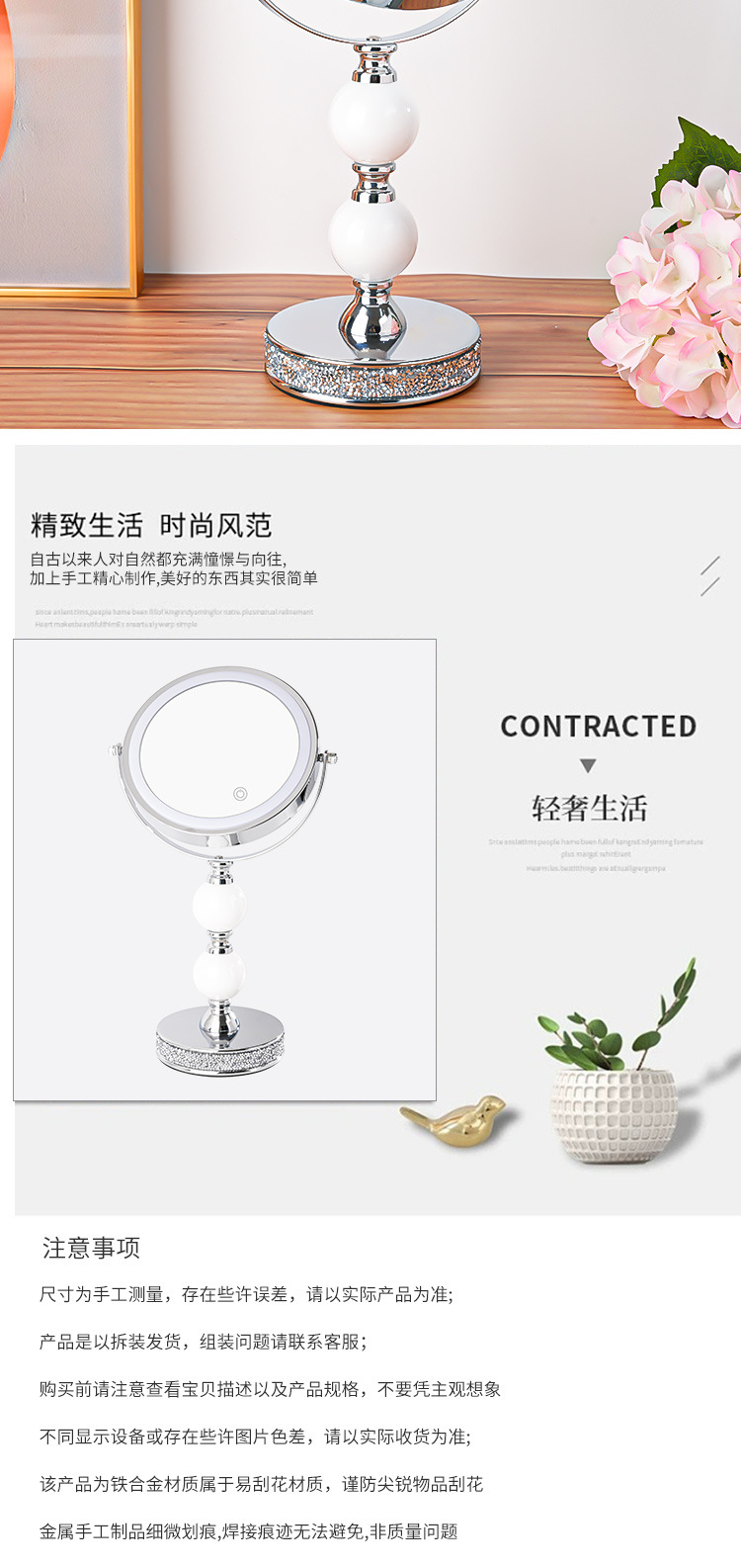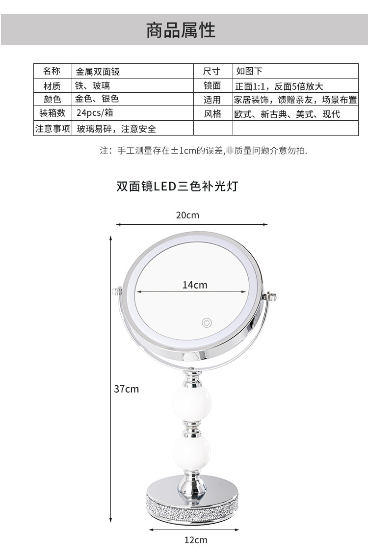 网红高倍带灯LED台式化妆镜补光灯双面镜公主镜美容镜桌面装饰 投诉