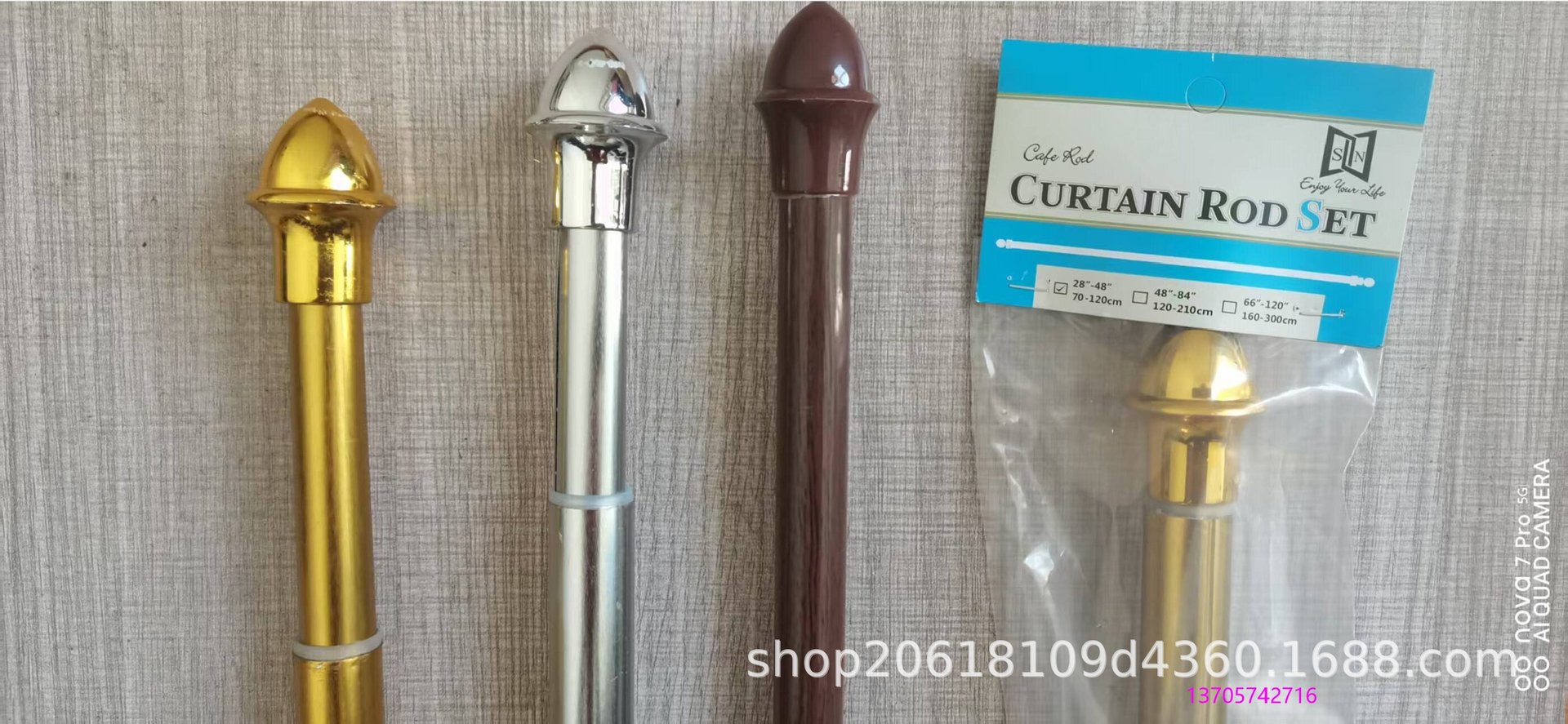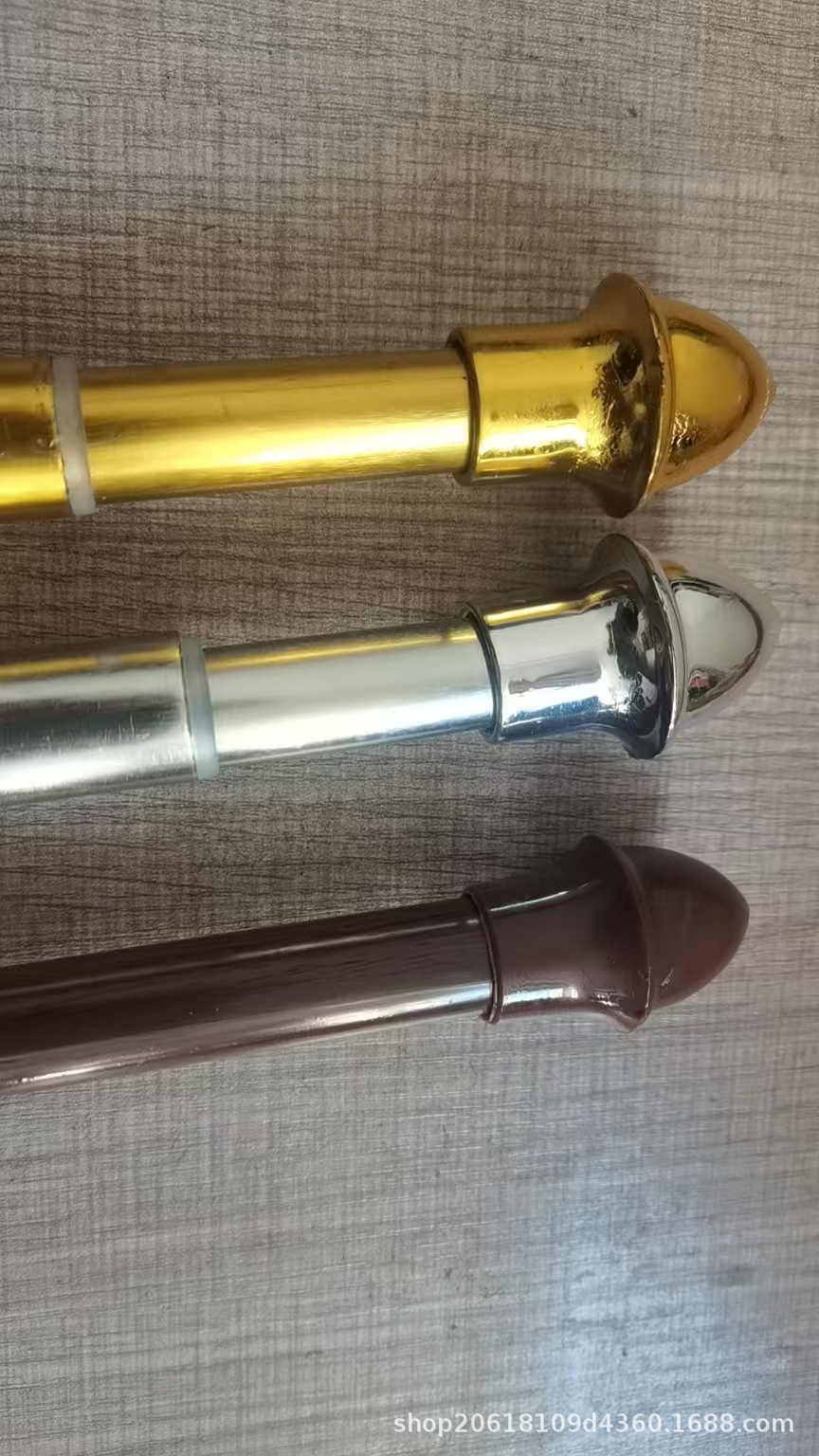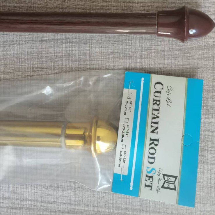 我们专业生产出口东南亚市场的金色银色木纹色伸缩高档窗帘杆,新研制有专利的杆子为无缝的,尤其适合邮购包装的,做到任意压制我们的杆子永不变形。我们的杆子的直径有19MM+16MM组合(3/4英寸),也有直径16MM+13MM组合的(5/8英寸)规格齐全,主要以28-48英寸,48-84英寸比较好销。也可以按照客人的要求定制长度,定制颜色。我们的装饰头非常美观,电镀效果一流,我们的价格极具竞争力,相信我们的服务也是优质的,期待你的帮助,请随时与我们联系合作。