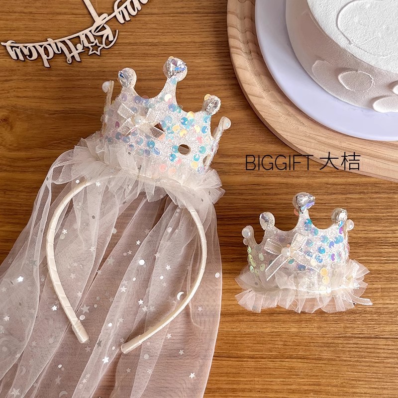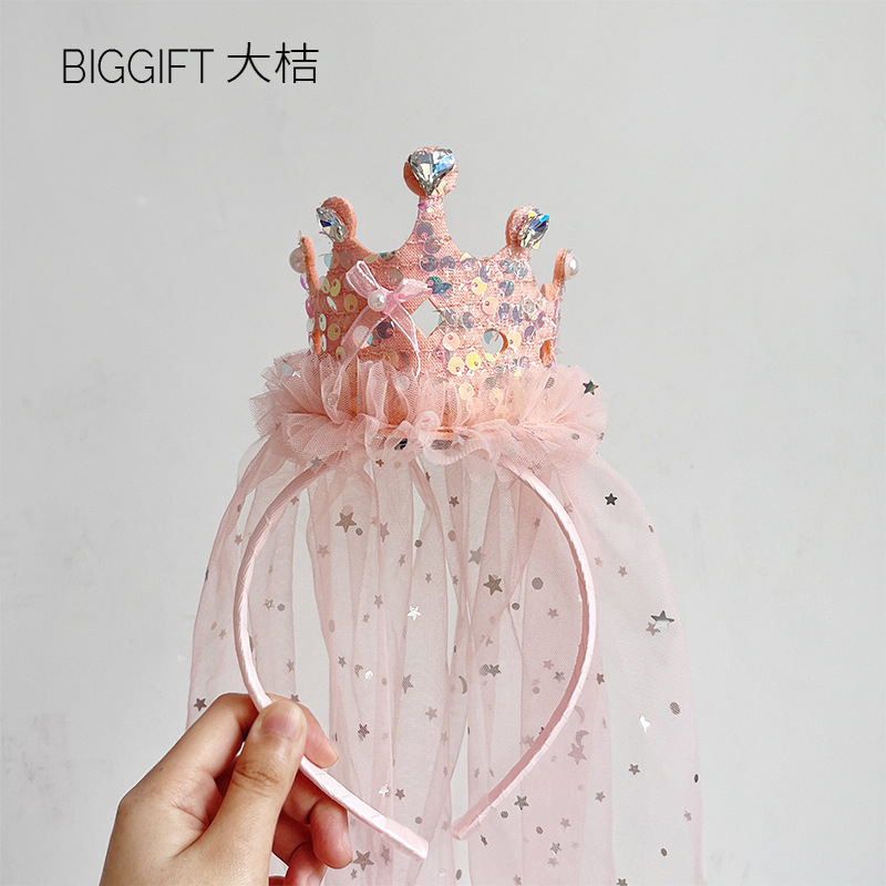 皇冠头饰儿童纱纱女童生日帽子发箍公主发卡女孩可爱卡通派对发饰