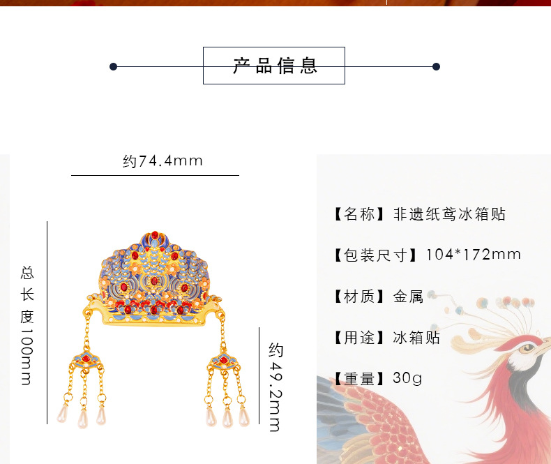 原创国潮爆款凤冠冰箱贴装饰文创金属磁吸博物馆旅游纪念工艺品 投诉