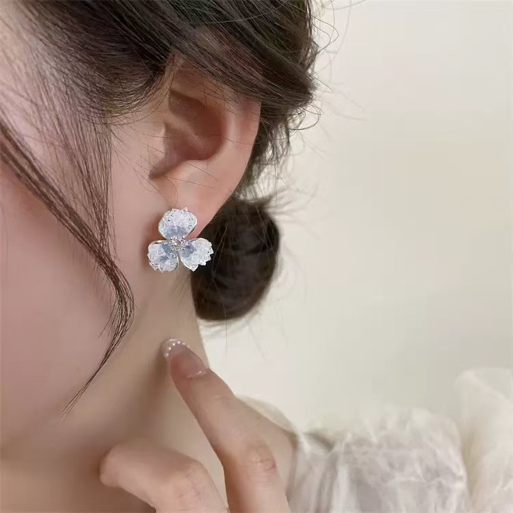 2025春夏耳饰四叶草耳钉蓝色花朵耳钉轻奢高级感耳饰锆石耳钉批发 English | 投诉