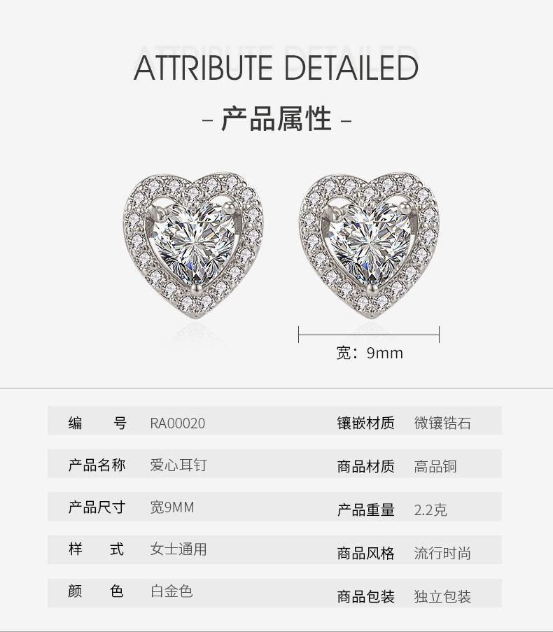 RAKOL 韩国小众设计感甜美爱心耳环气质个性小巧精美锆石耳钉耳饰 English | 投诉