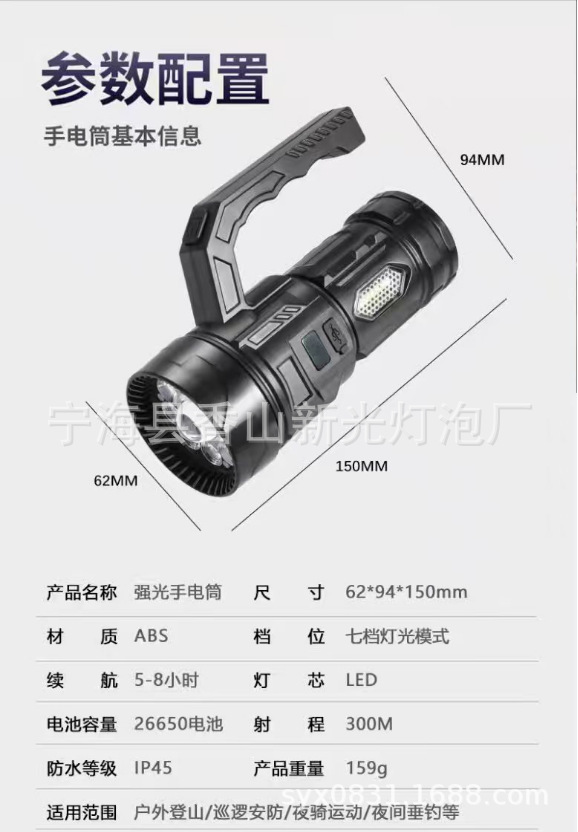 温馨提示: 产品图片、属性及价格仅供参考,开票另加税点,详情咨询客服!!!大范围的免费招收加盟代理:支持订购各种手电筒、照明电筒、头灯、led工作灯、钓鱼灯、Led塑料电筒、强光手电筒、led手电筒、露营灯、汽车检修灯、塑料野营灯等各种灯类