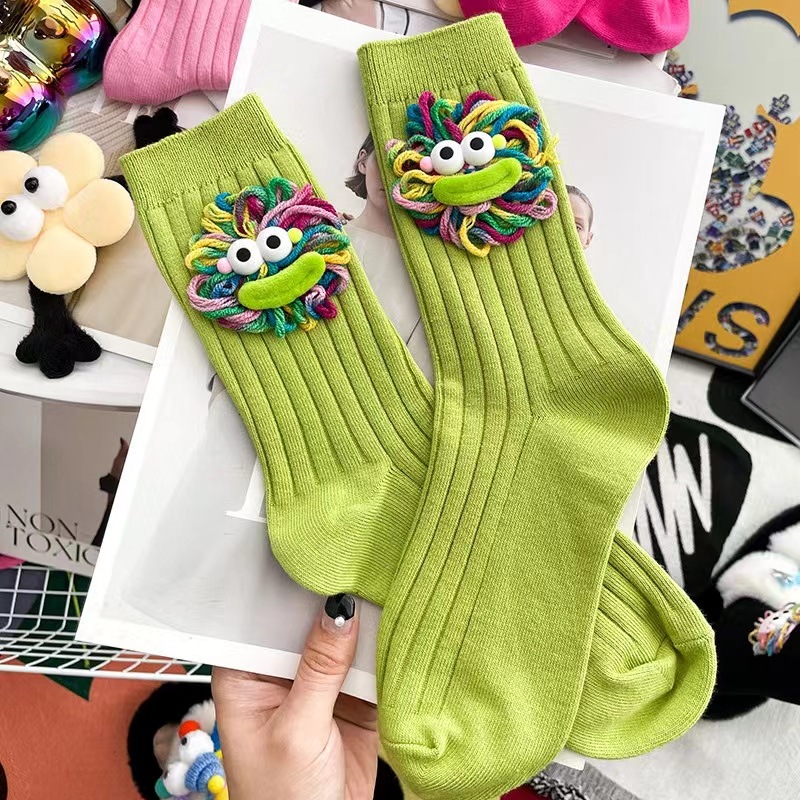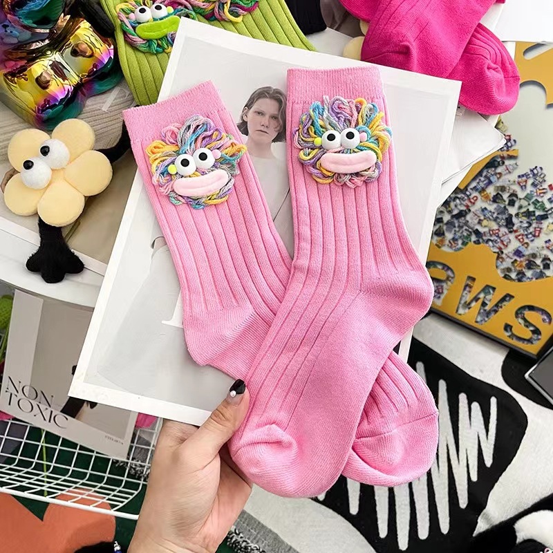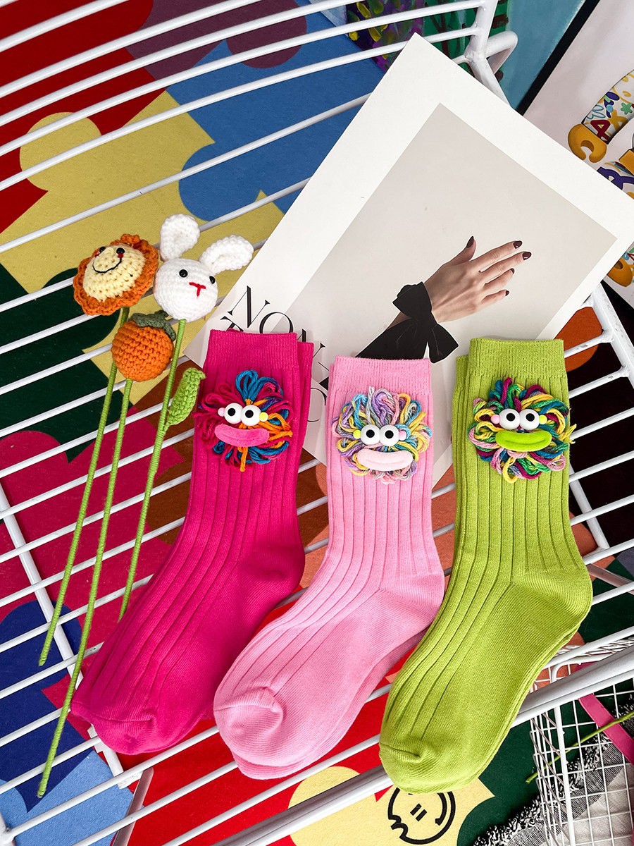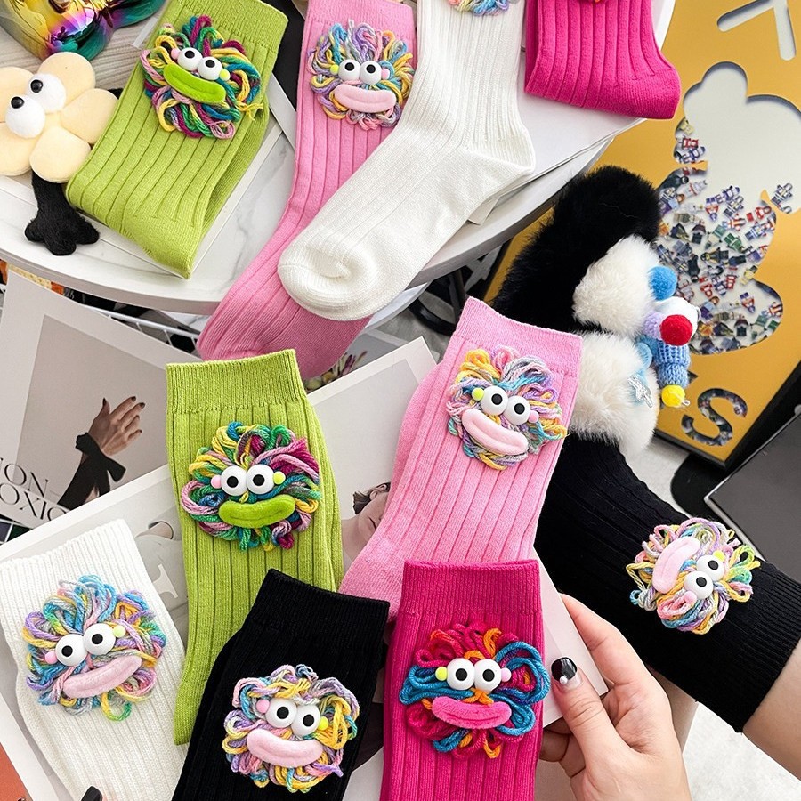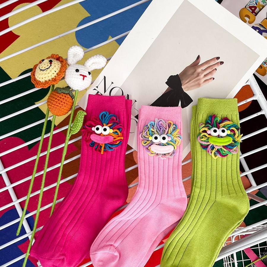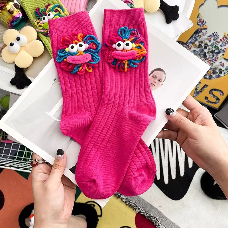 潮流爆款可爱手工勾毛线丑萌大嘴长筒堆堆袜棉网红外穿搭中筒袜