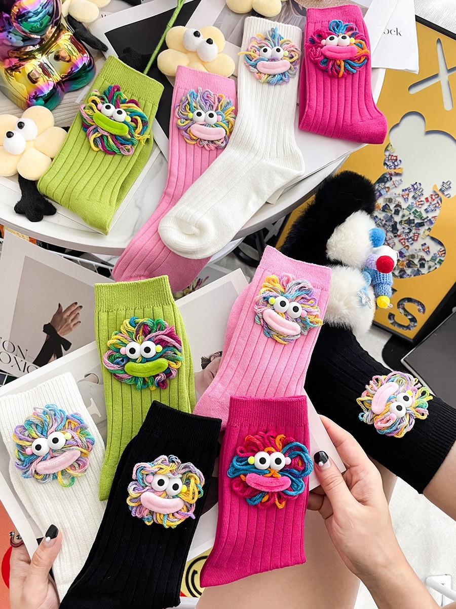 面料名称: 棉 无骨缝制: 否:机器缝头 功能: 防摩擦 图案: 纯色 包装形式: 袋装 适用性别: 中性/男女均可 适用年龄段: 青年(18-40周岁) 主面料成分: 棉 筒高: 中筒 针数: 176N 上市时间: 2025年春季 适合季节: 四季通用 产品类别: 普通休闲袜 产地: 诸暨 颜色: 白色,黑色,粉色,玫红,果绿 尺码: 毛线丑萌款 是否进口: 否 成分及含量: 30 主面料成分含量: 30%以下 主面料成分的含量: 80 重量: 0.5 kg/件