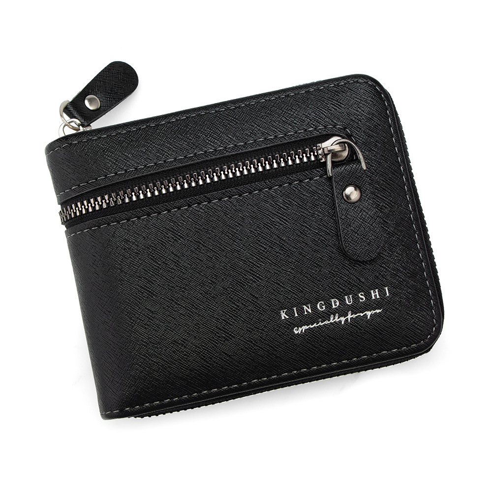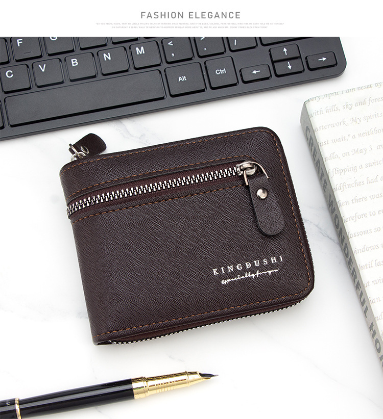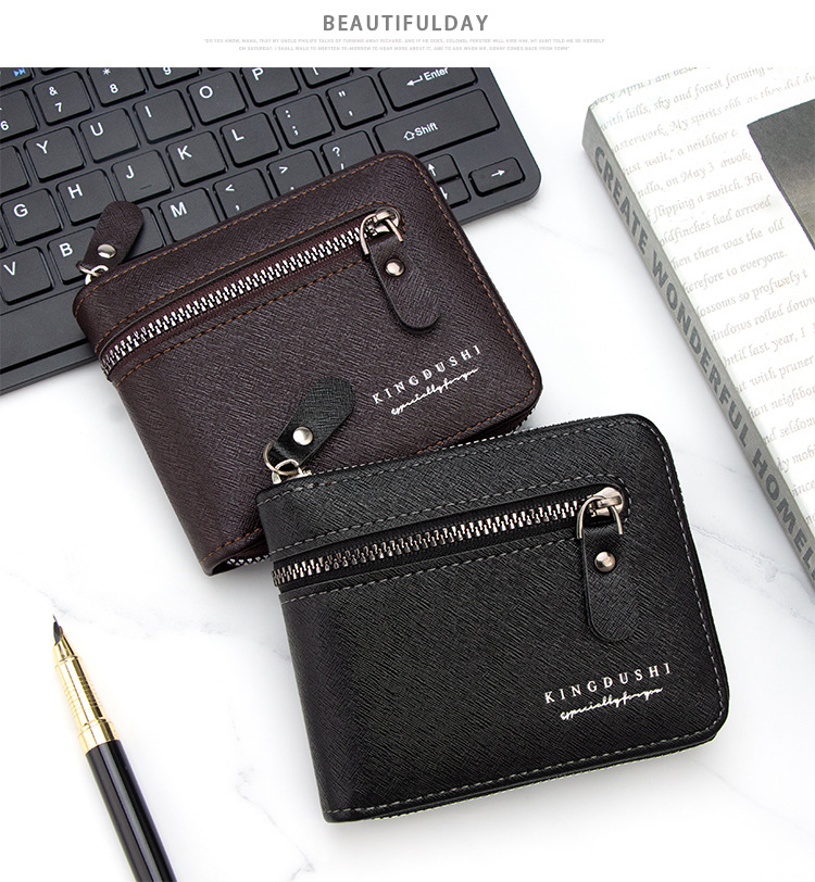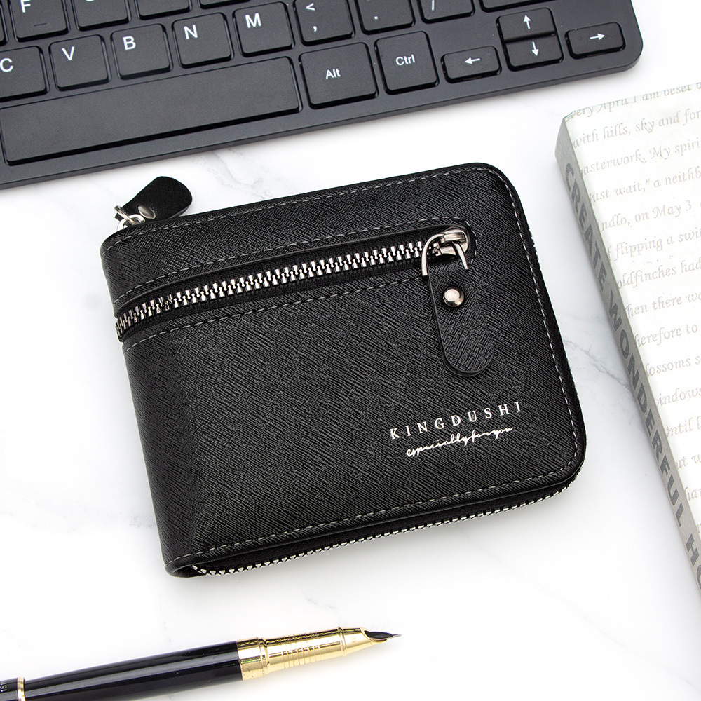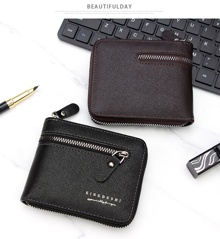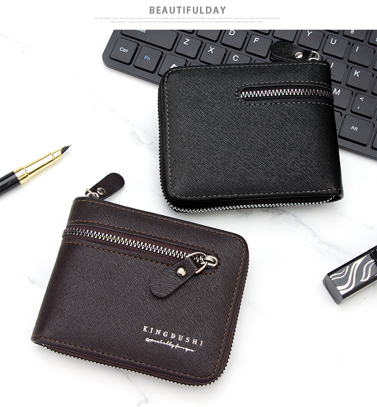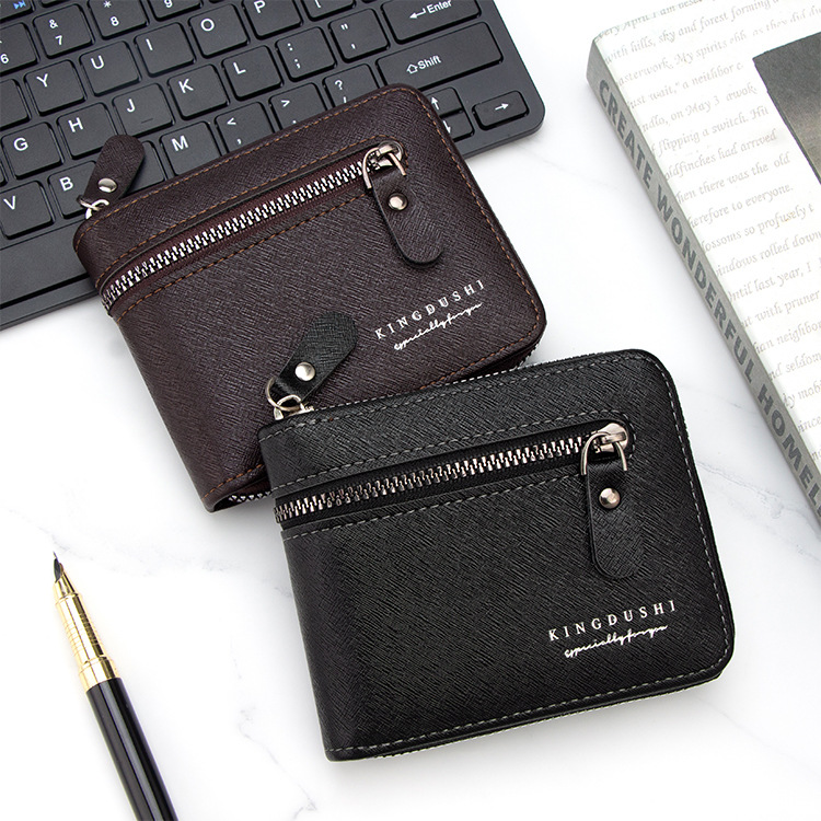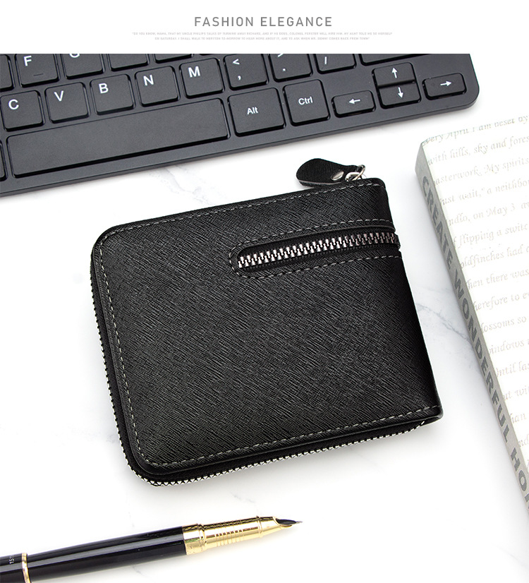 新款十字纹男士短款围链钱包多卡位卡包碎银袋拉链男钱夹厂家批发
