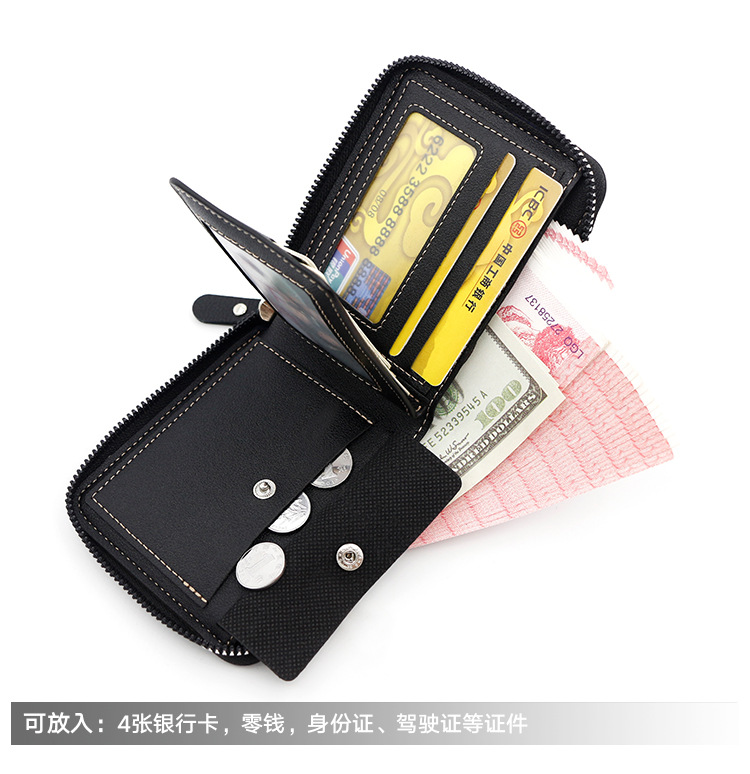 新款十字纹男士短款围链钱包多卡位卡包碎银袋拉链男钱夹厂家批发 投诉