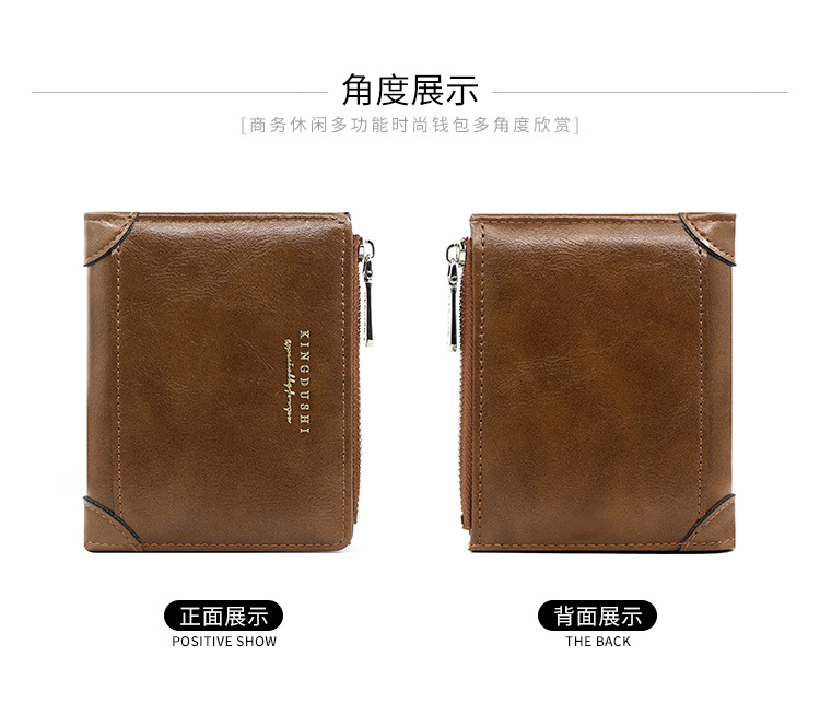 跨境爆款高级感商务男士竖款钱包侧拉链多卡位合页钱包零钱夹批发 投诉