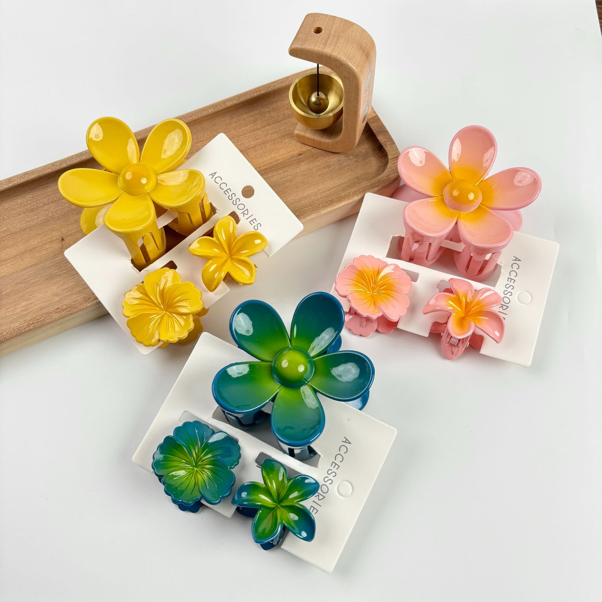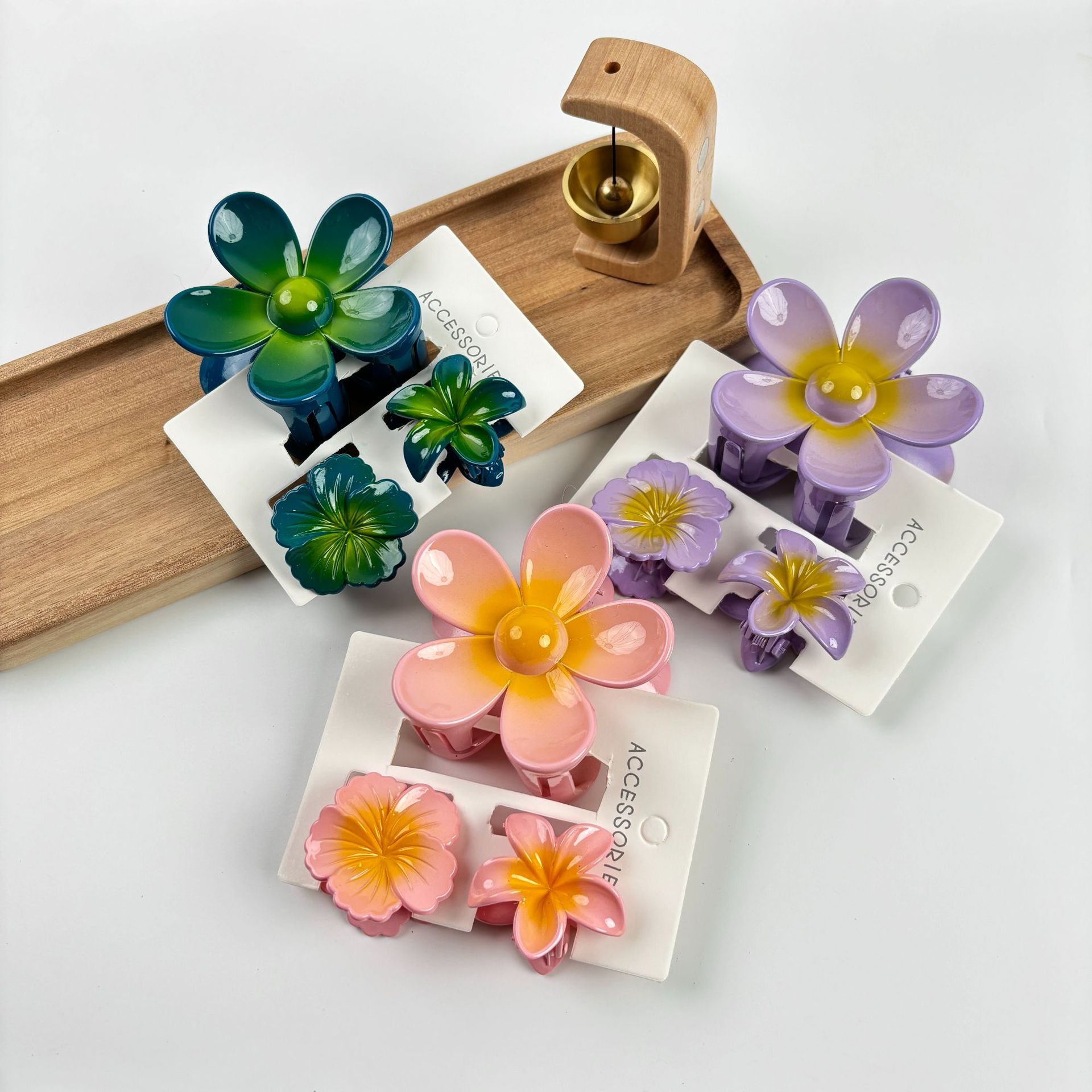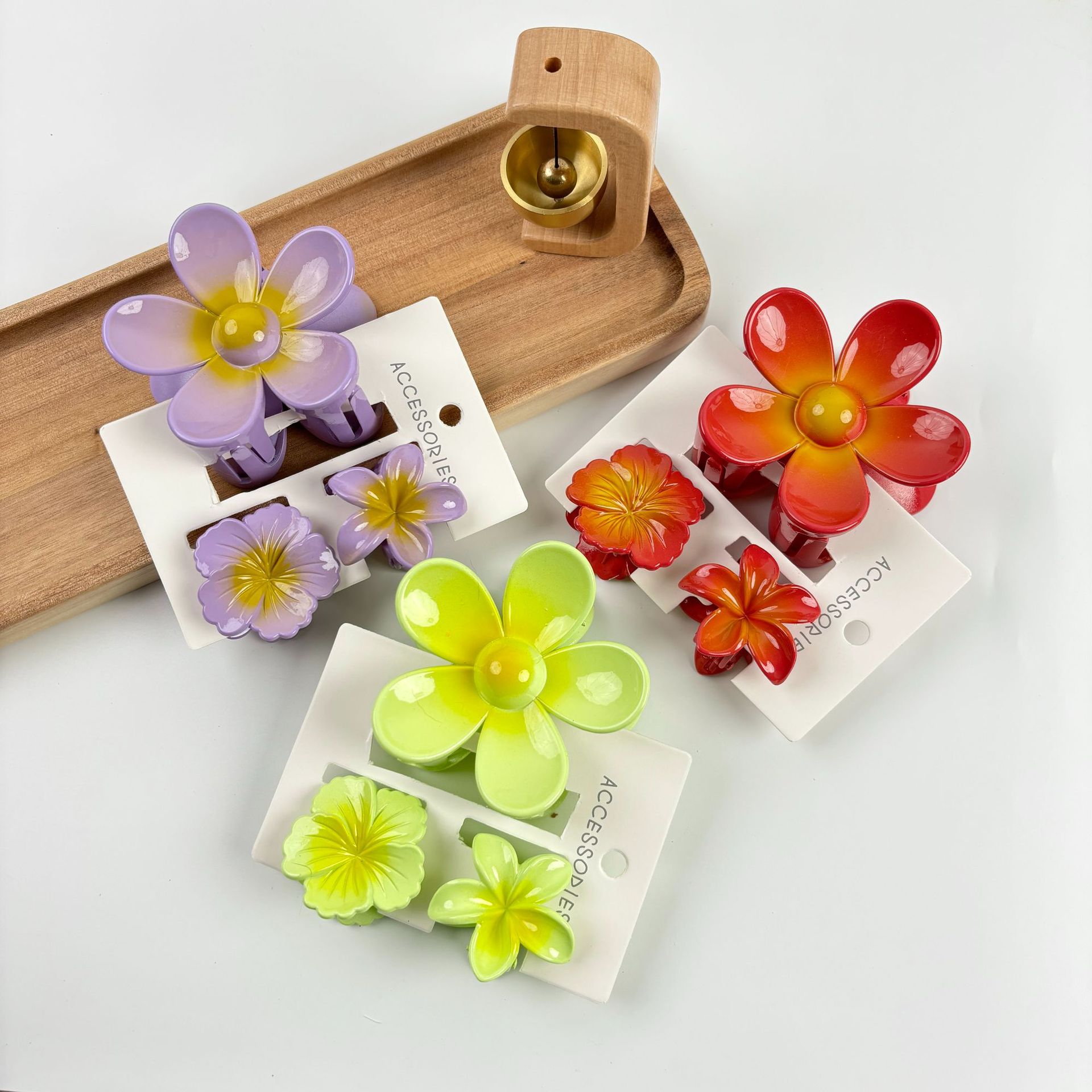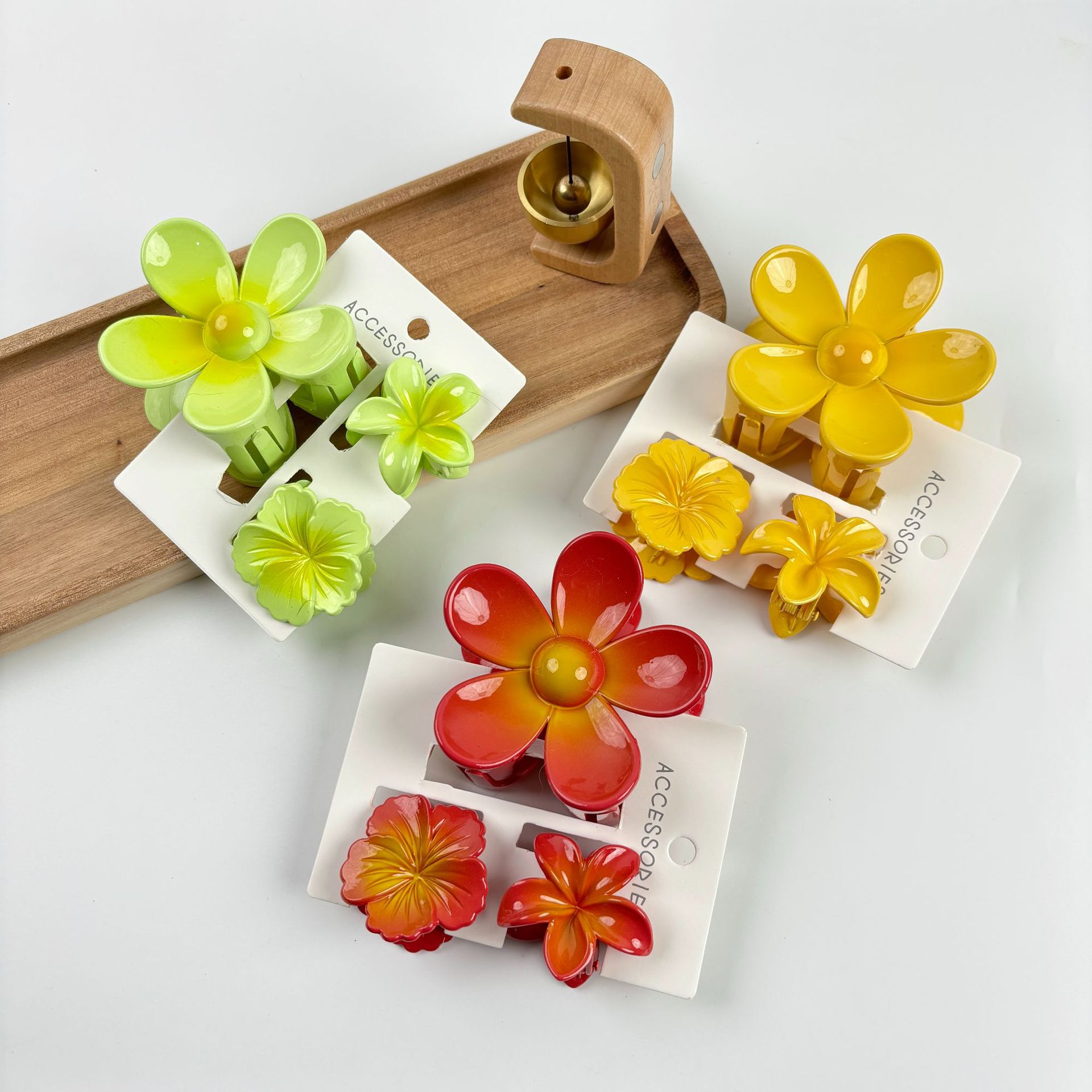 材质: 塑料/树脂 货号: 173 品牌: 无 样式: 简约,甜美,可爱,小清新 处理工艺: 烤漆 发夹分类: 抓夹 产地: 义乌 颜色: 紫色,黄色,绿色,粉色,蓝色,红色 有可授权的自有品牌: 否 是否跨境出口专供货源: 是 流行元素: 花瓣 上市年份/季节: 2024年春季 风格: 百搭 风格分类: 时尚通勤 适用人群: 女式 流行元素分类: 植物花卉 重量: 0.5 kg/个