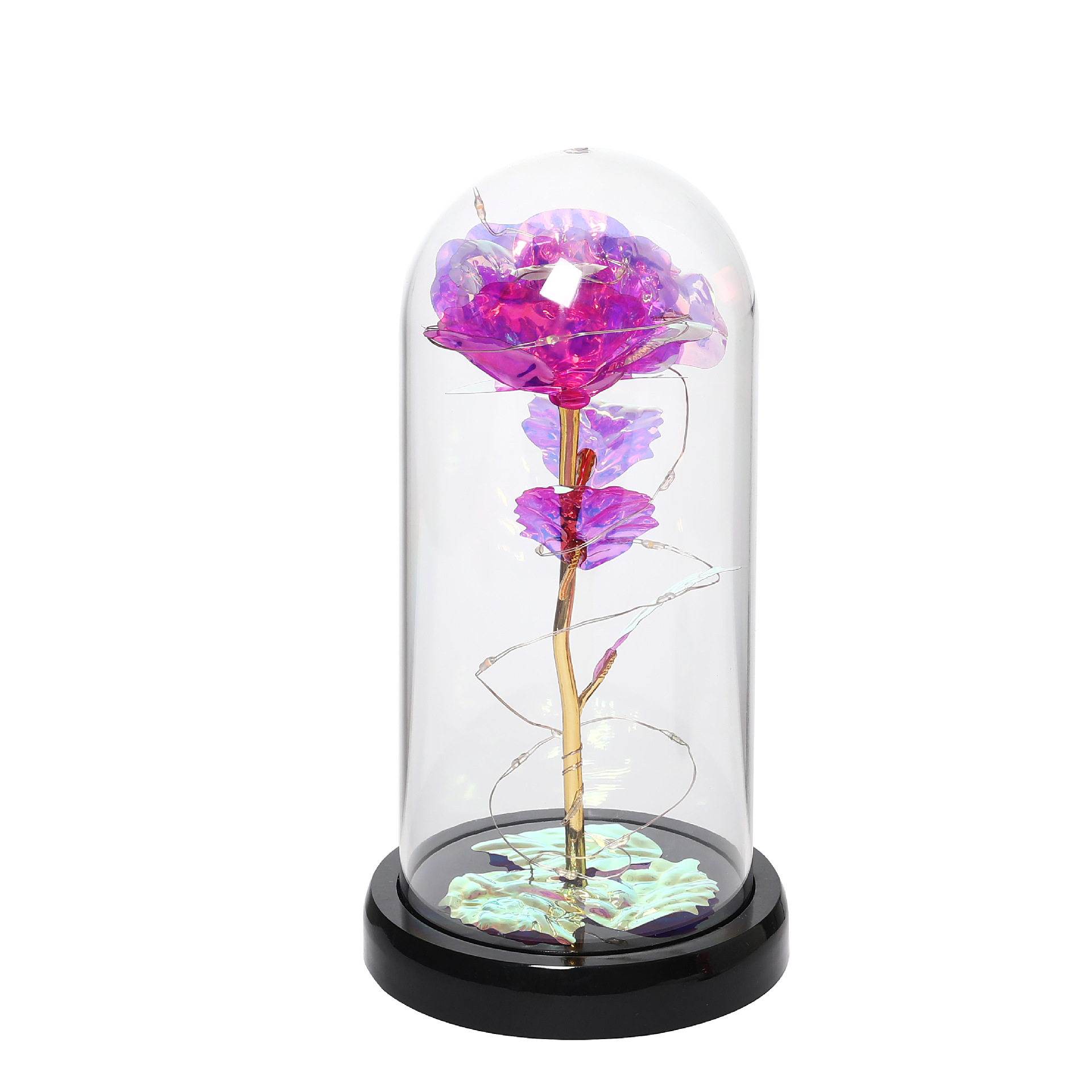 套装包含:玫瑰罩+底座+彩灯+金箔玫瑰+金箔叶+数据线