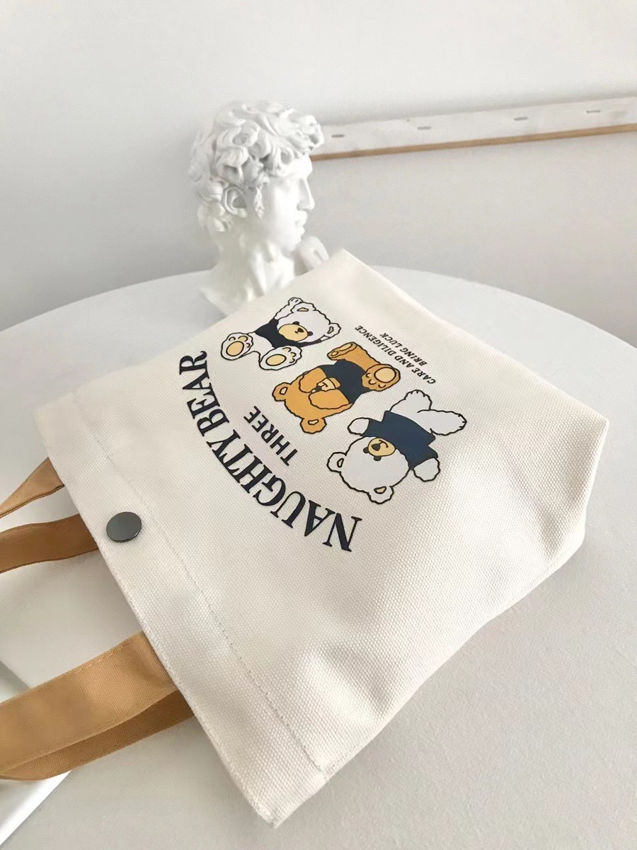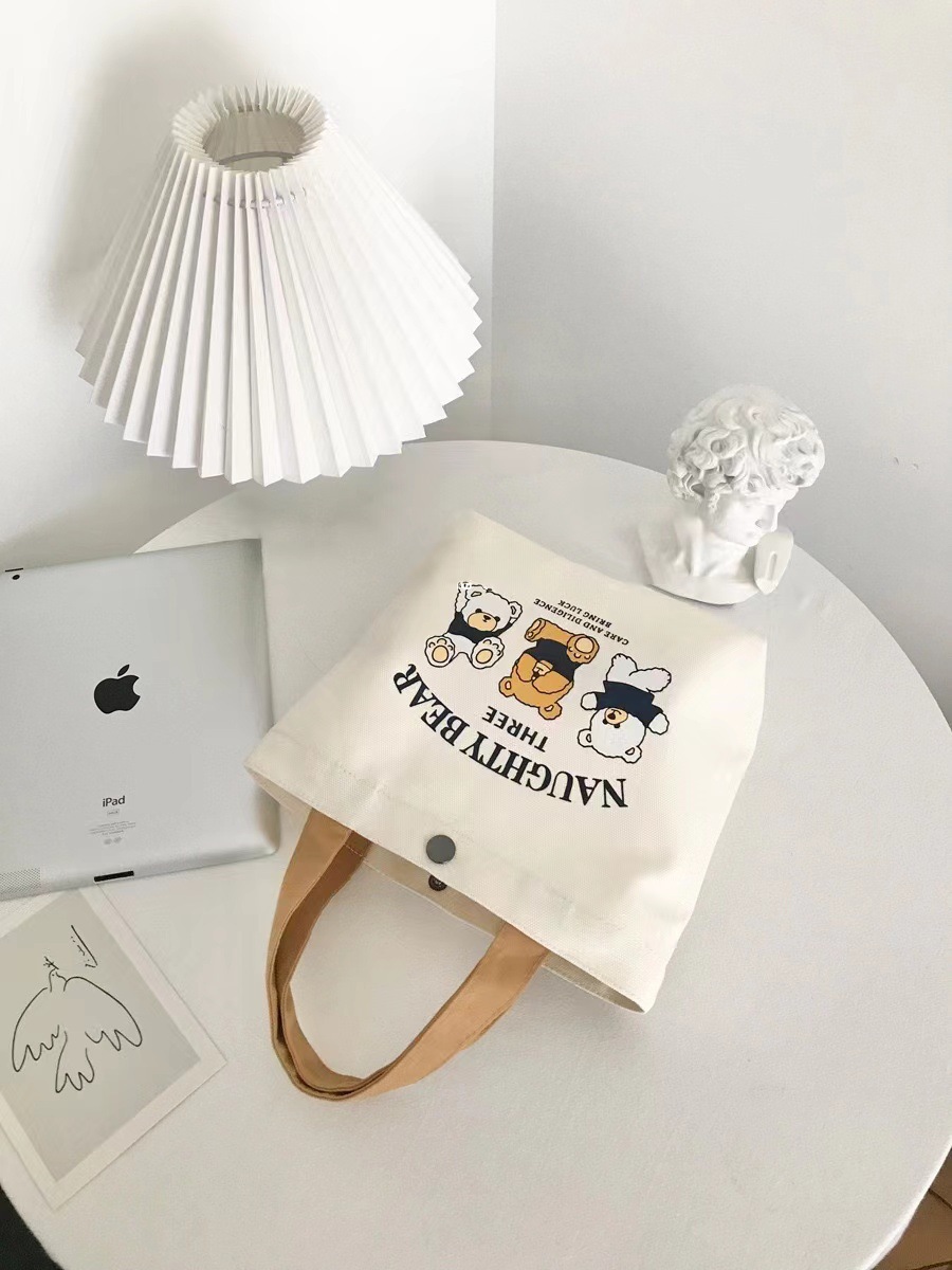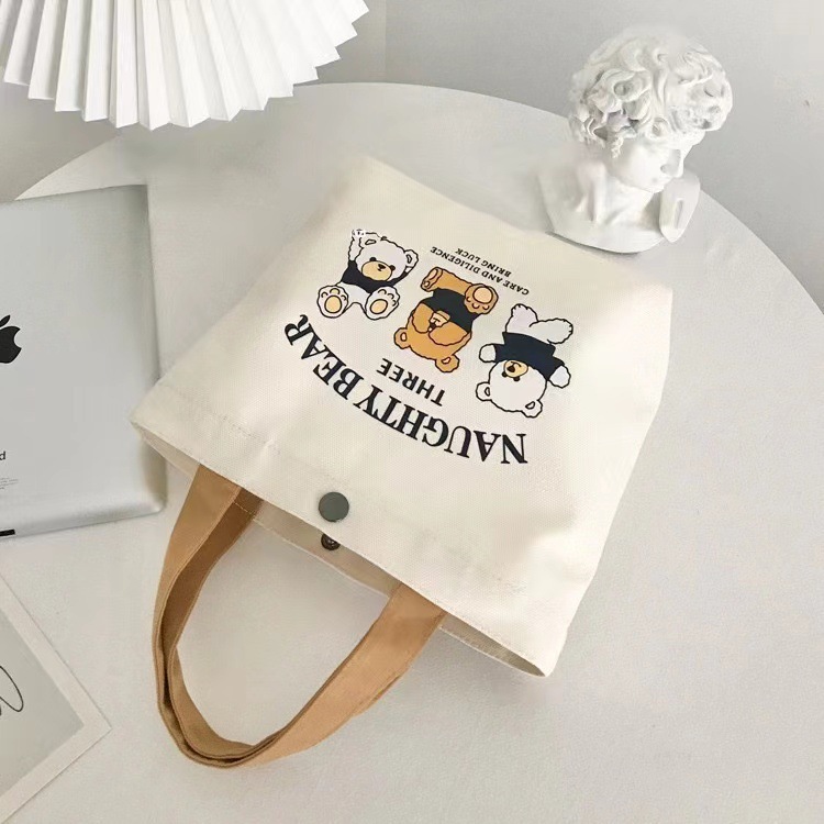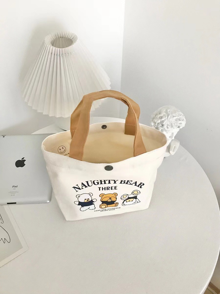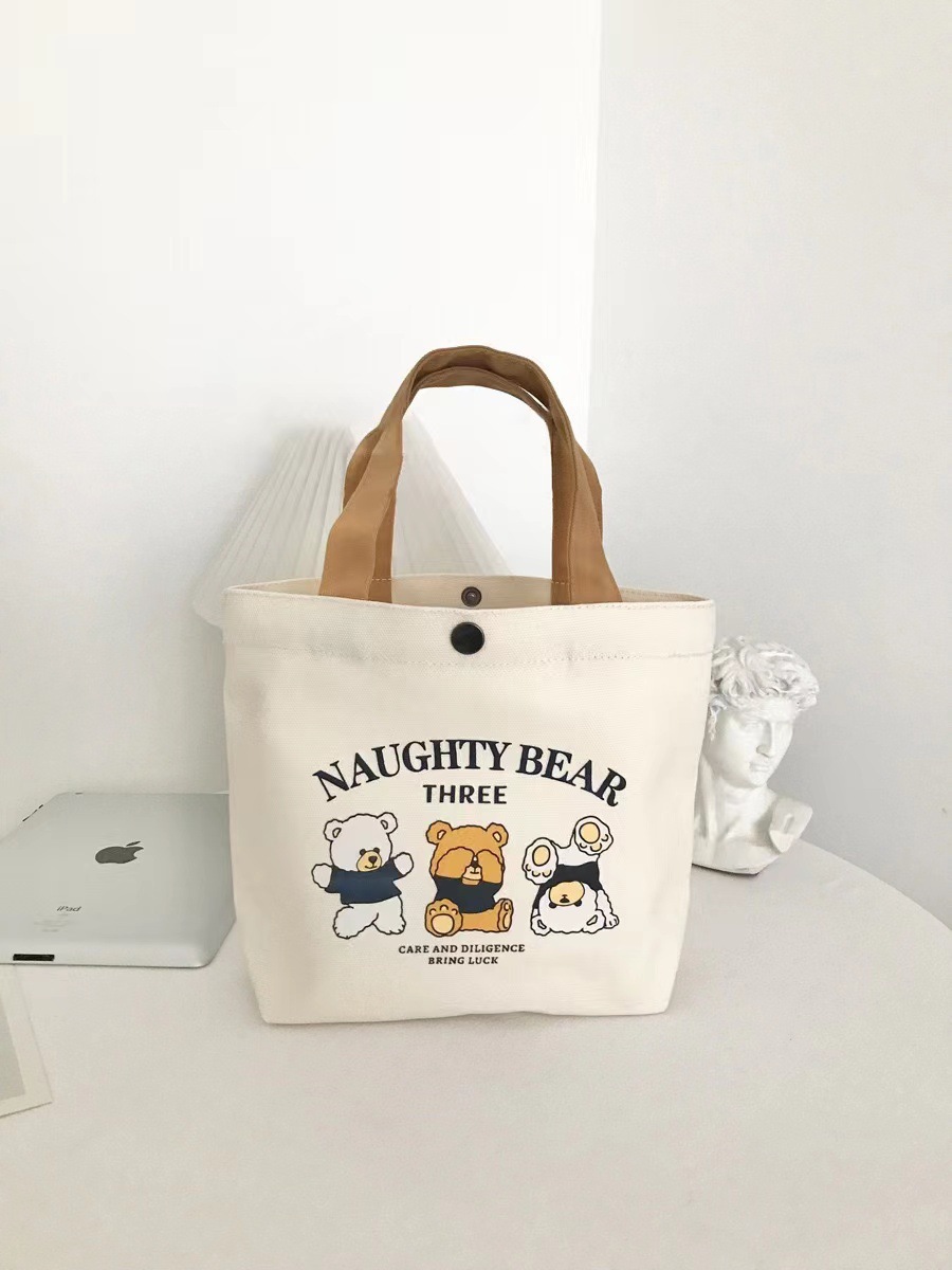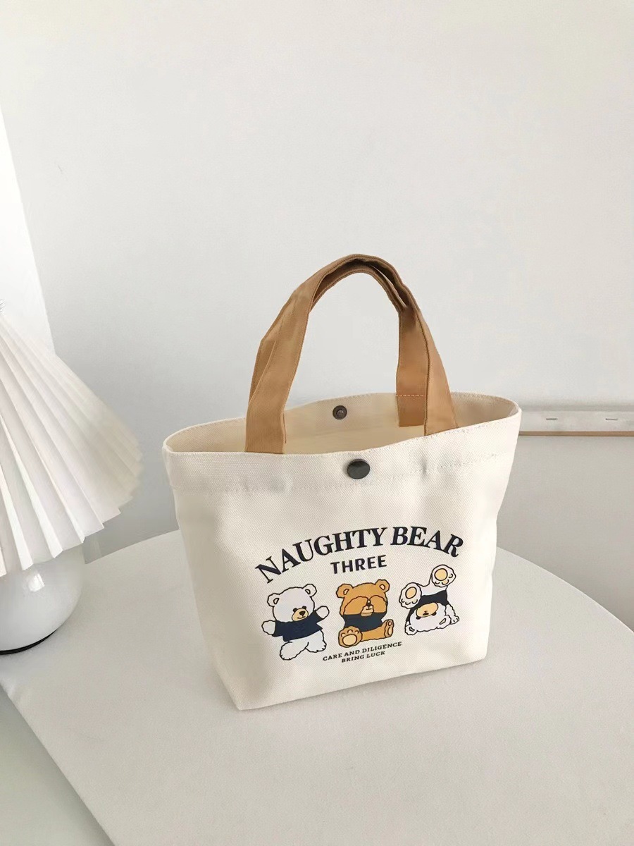 新款小熊帆布包百搭手提包女学生饭盒袋简约手提袋子上班族便当包