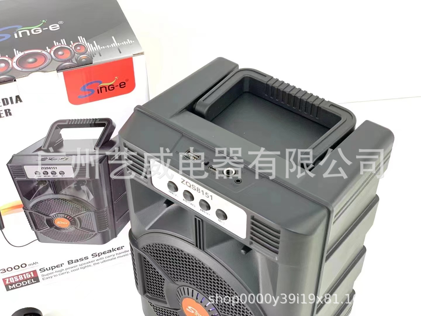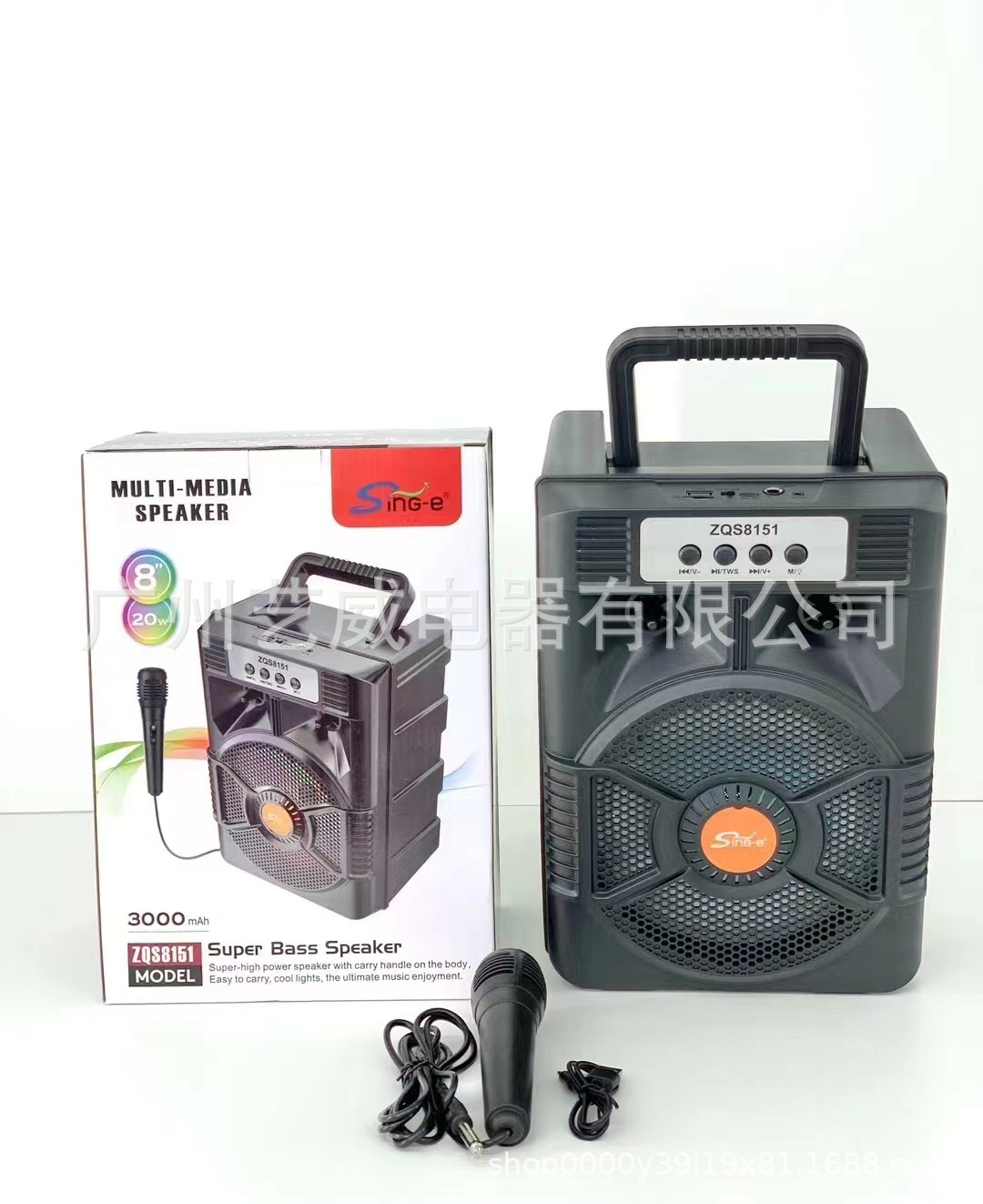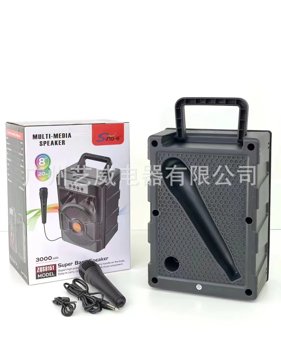 With BT/FM/USB/TF card /MIC, DC-5V charging (Type-c), USB with 5V boost+ With lithium battery protection, microphone base external installation, potentiometer volume, box function + with seven colors, seven colors are controlled by MODE