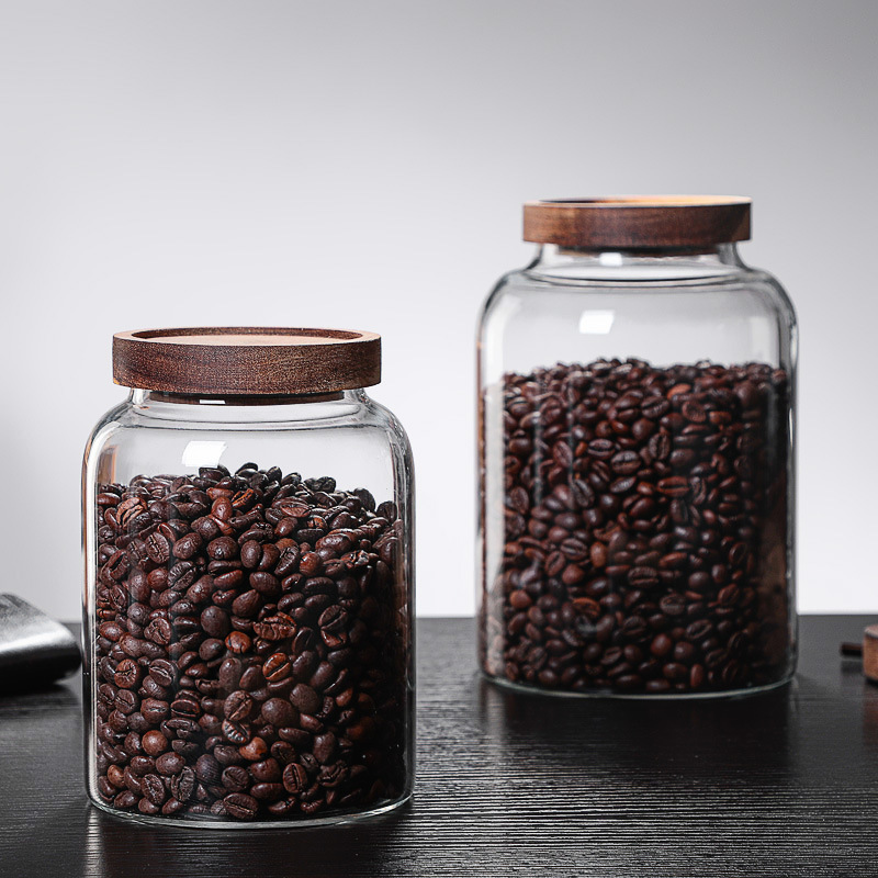批发相思木盖玻璃储物罐家用杂粮密封罐茶叶罐厨房收纳瓶陈皮罐
