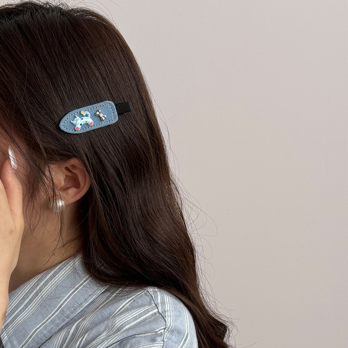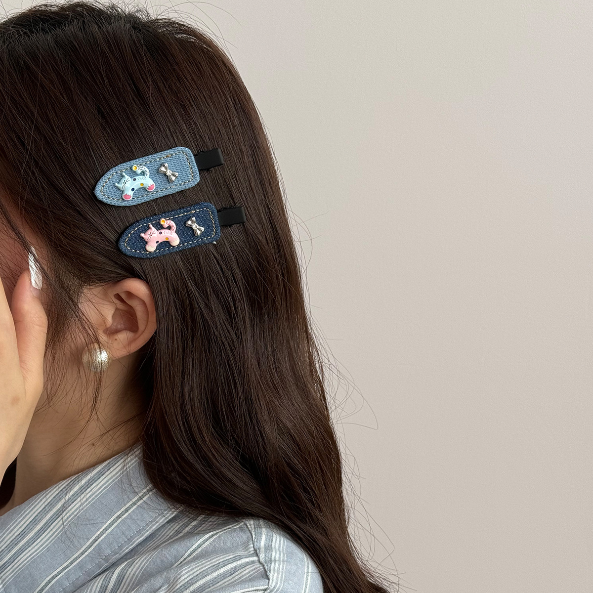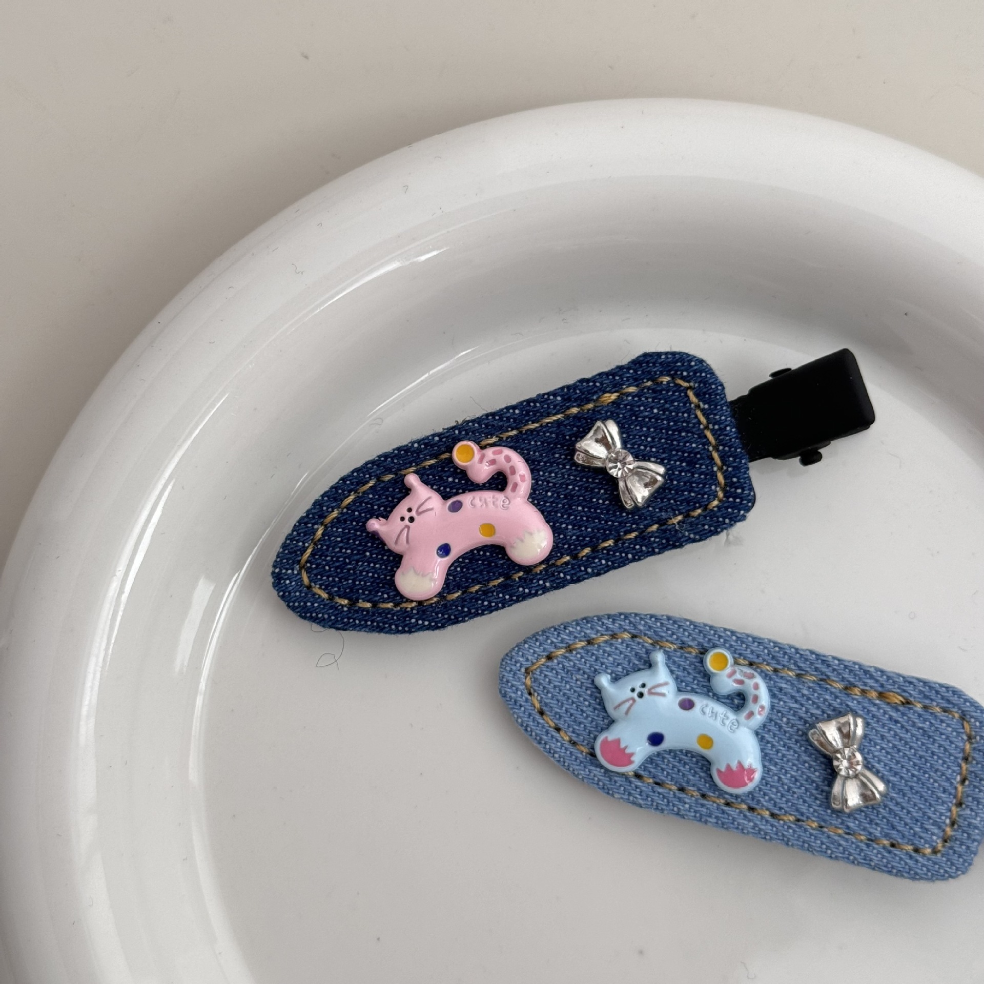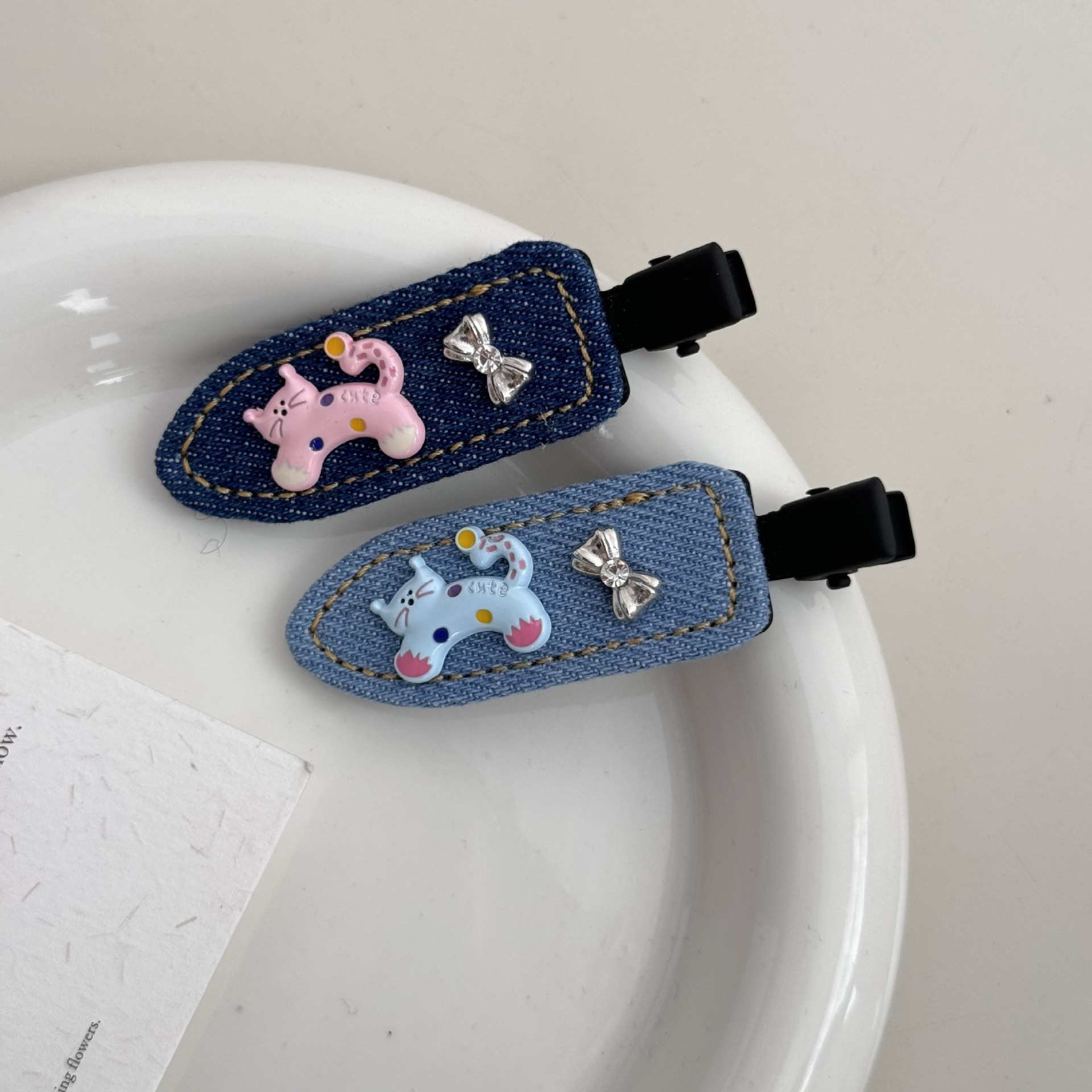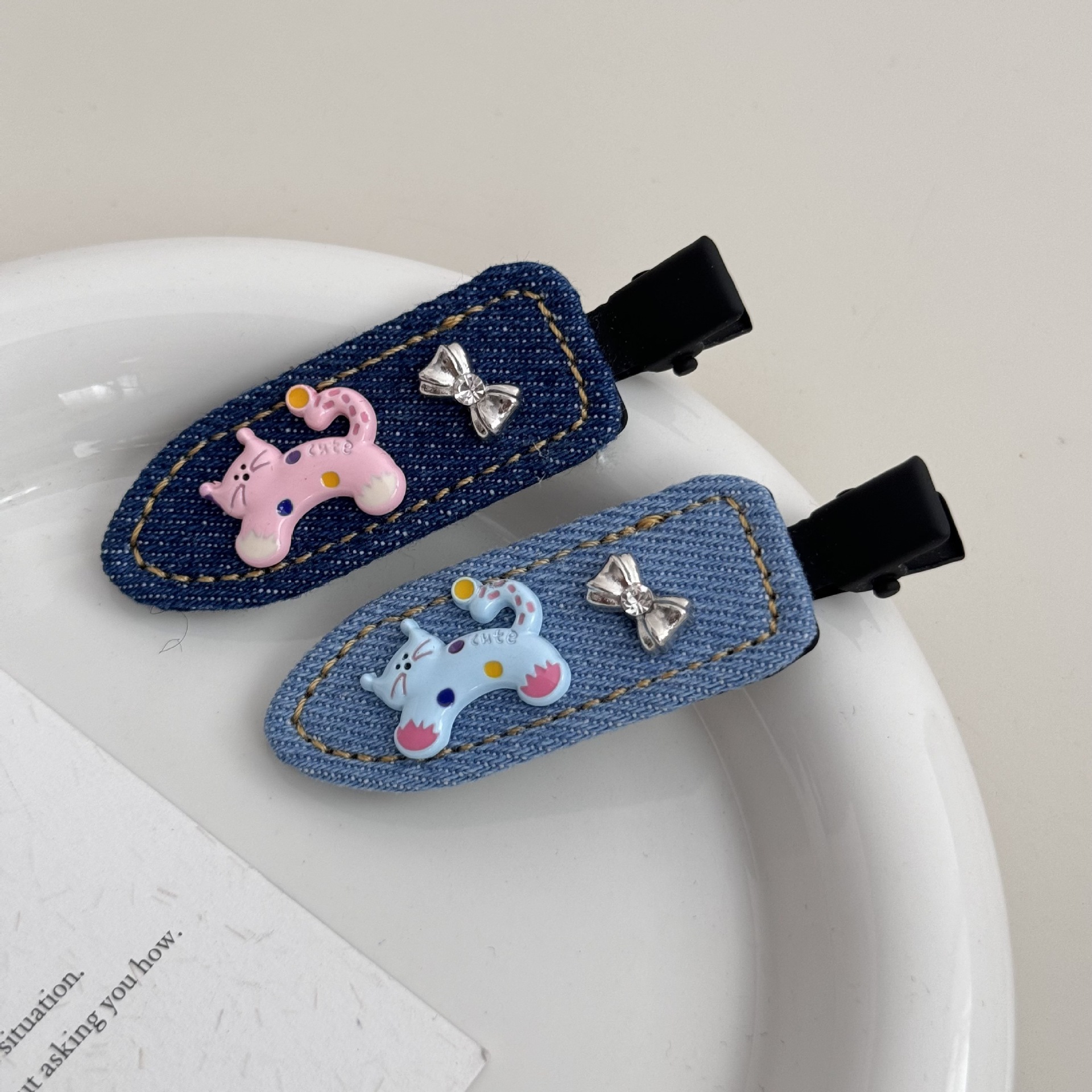 夏季牛仔呆萌小猫蝴蝶无痕刘海夹2025新款侧边刘海小众高级感发夹 投诉