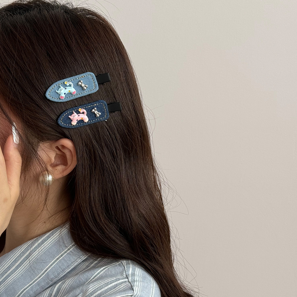夏季牛仔呆萌小猫蝴蝶无痕刘海夹2025新款侧边刘海小众高级感发夹