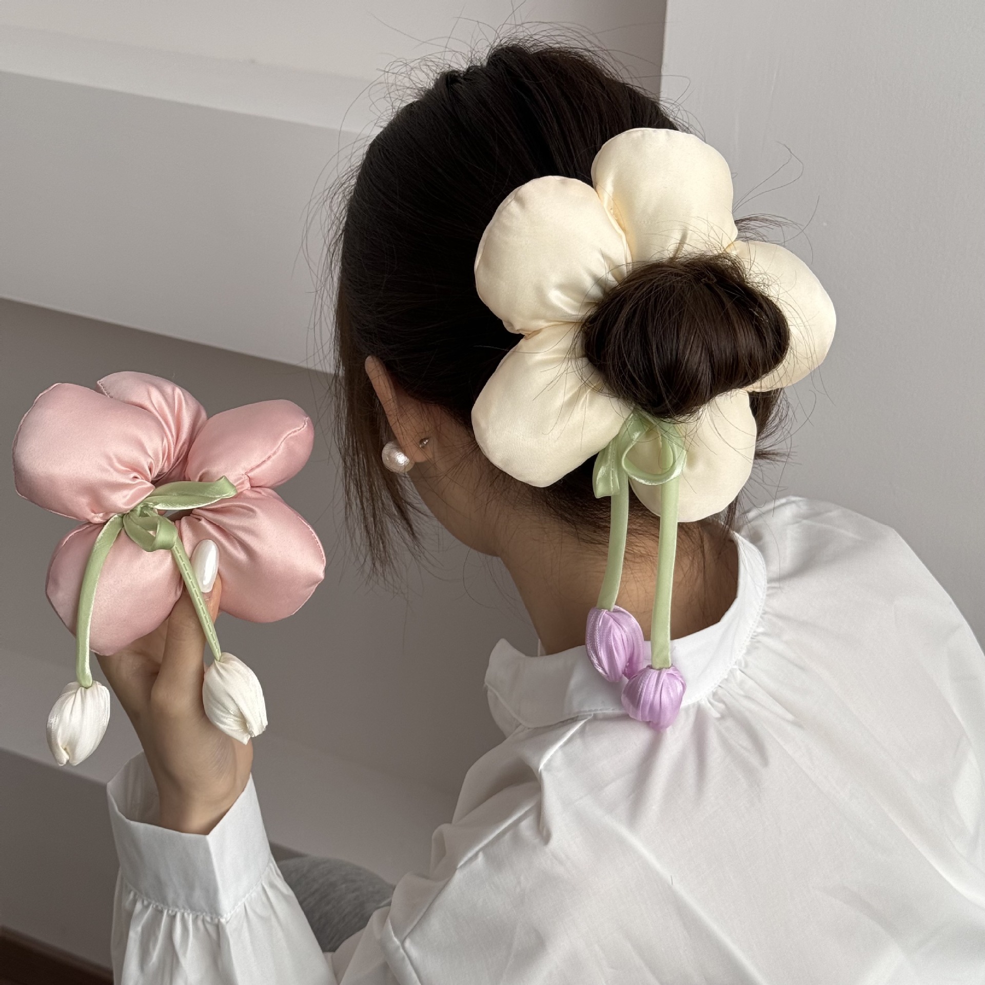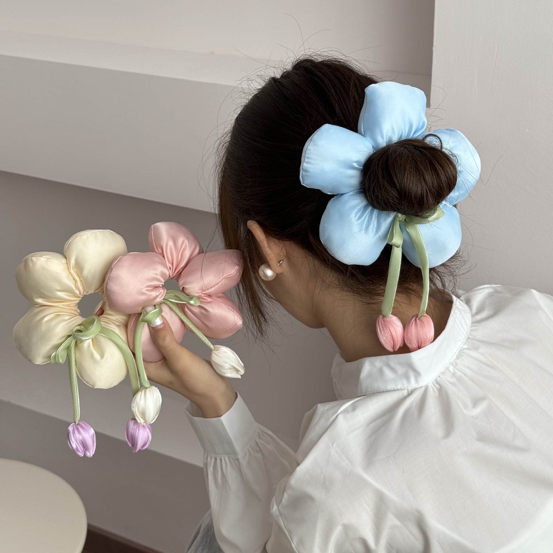 小众高级感博主风海绵花朵发圈立体面包发绳度假风大肠圈发饰头饰