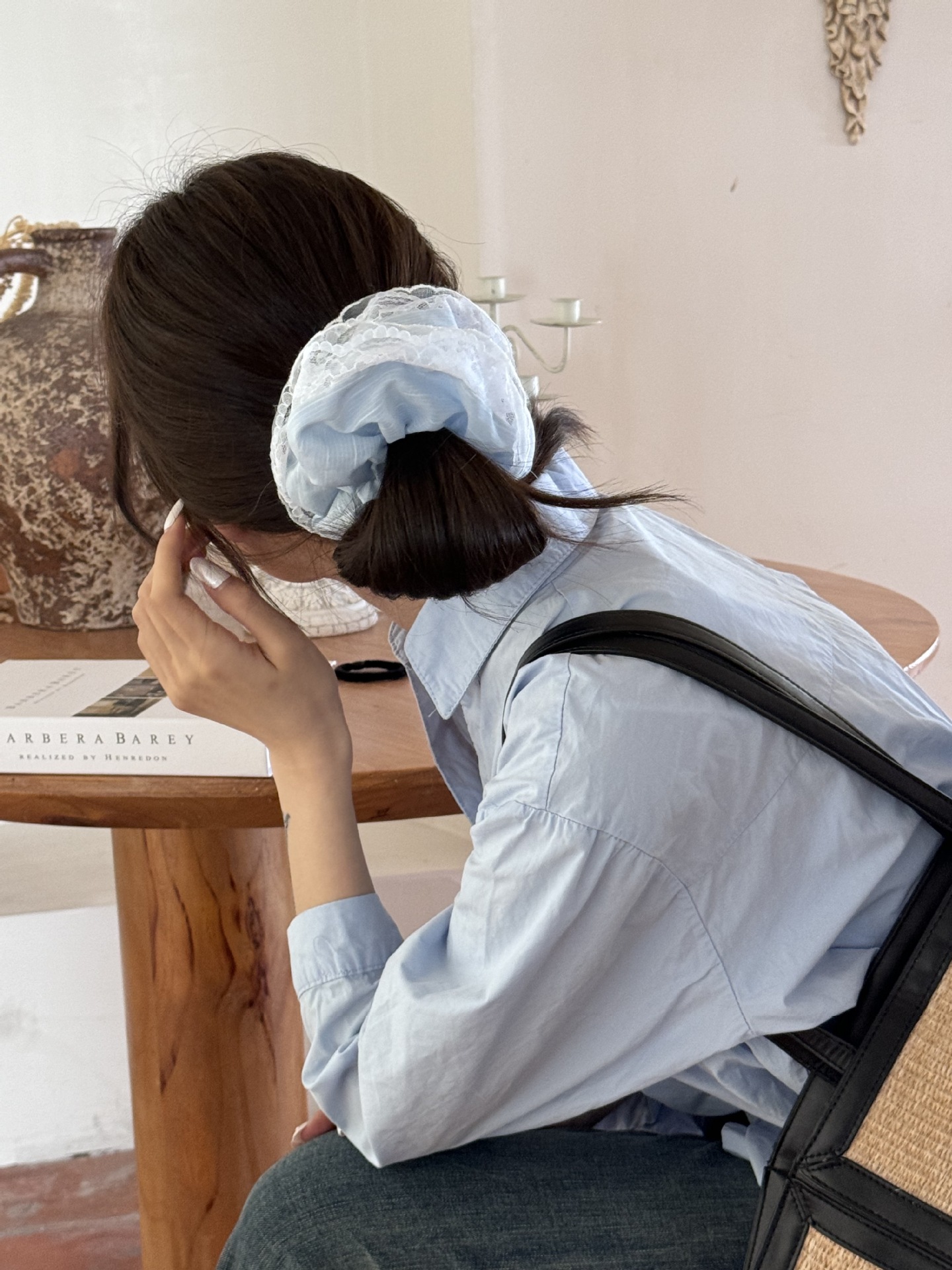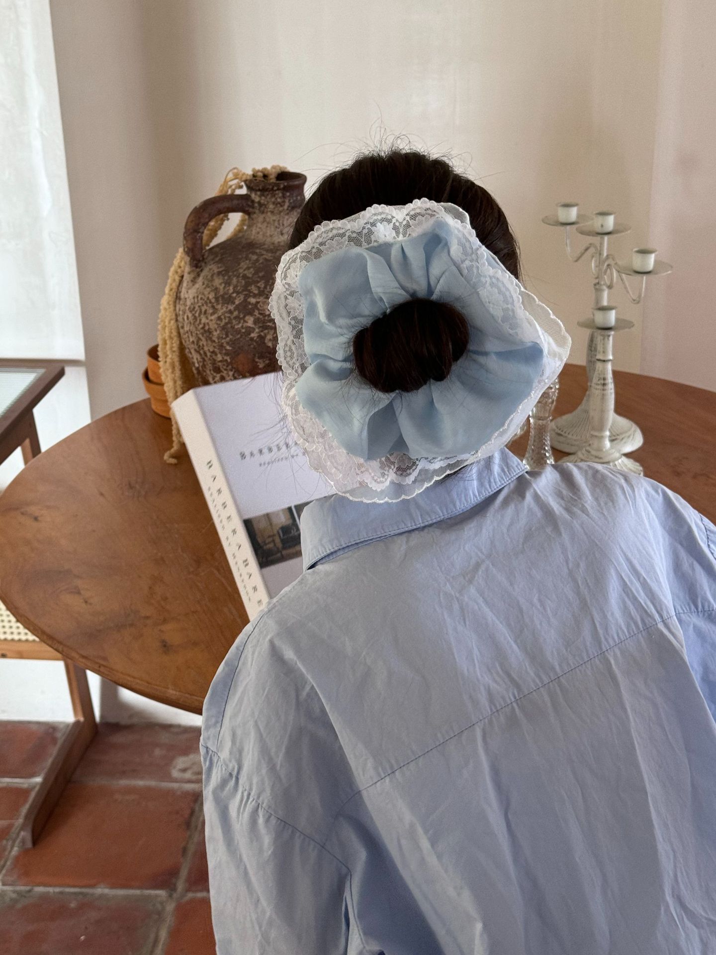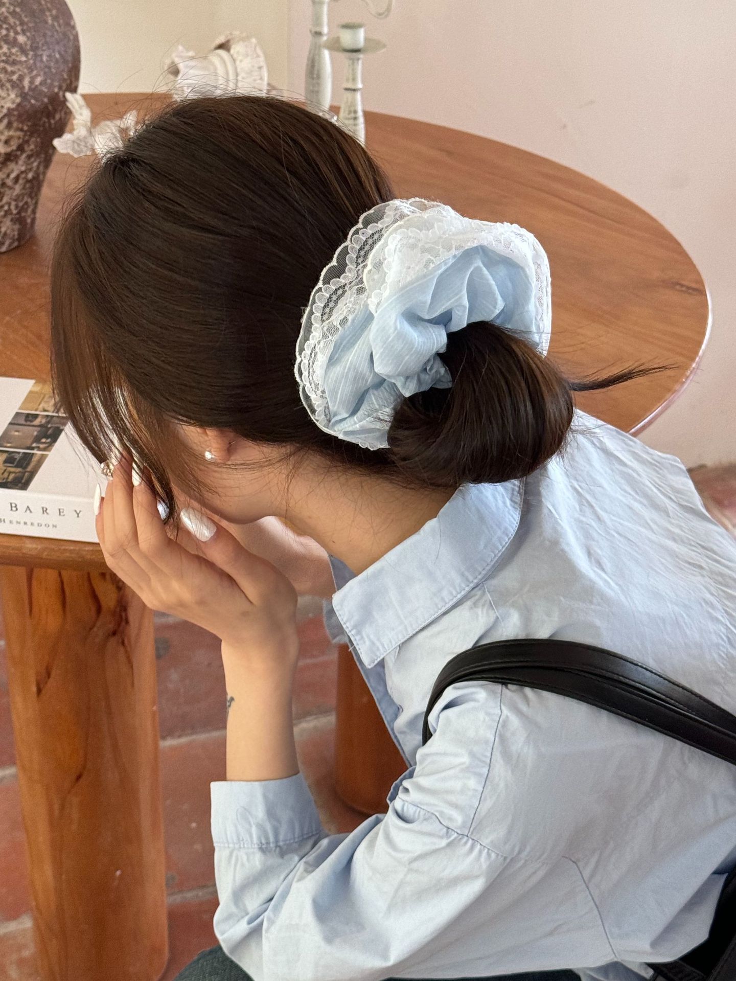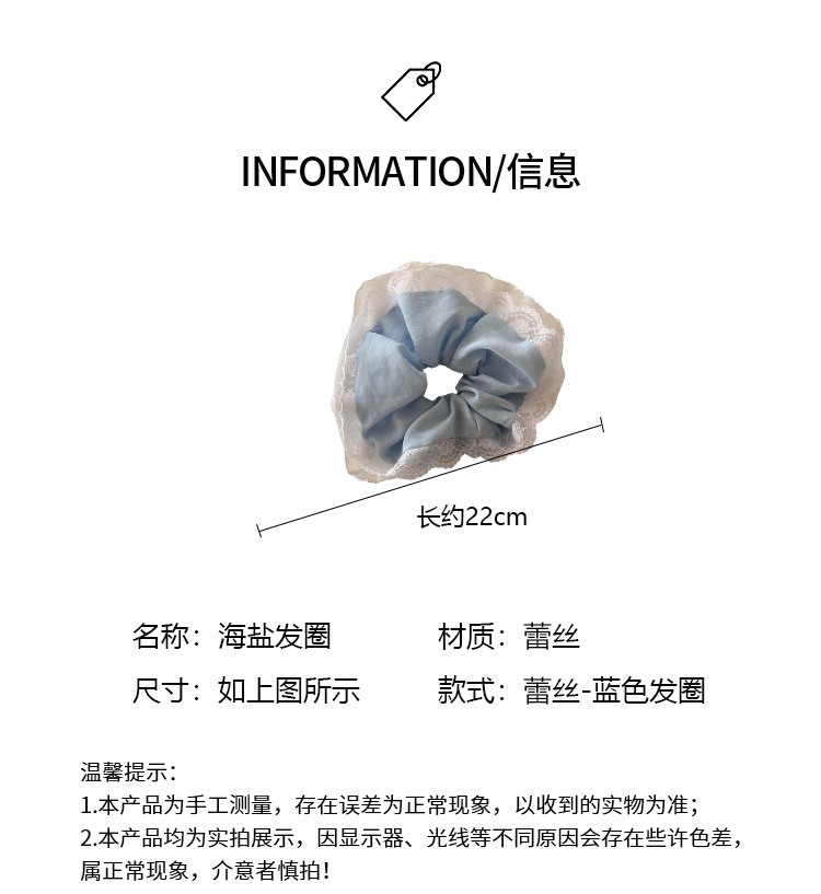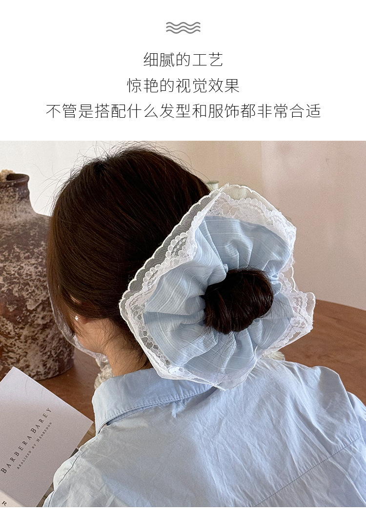 法式浪漫海盐蕾丝镂空复古发圈蓝色奶油花边高级感气质大肠发圈女 投诉