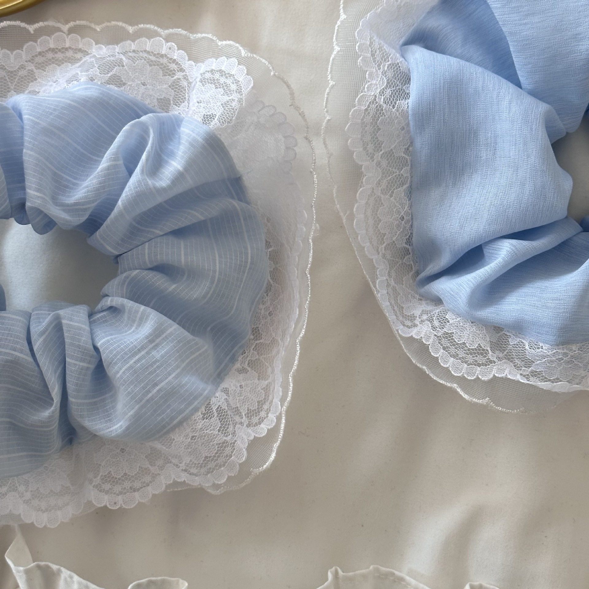 法式浪漫海盐蕾丝镂空复古发圈蓝色奶油花边高级感气质大肠发圈女