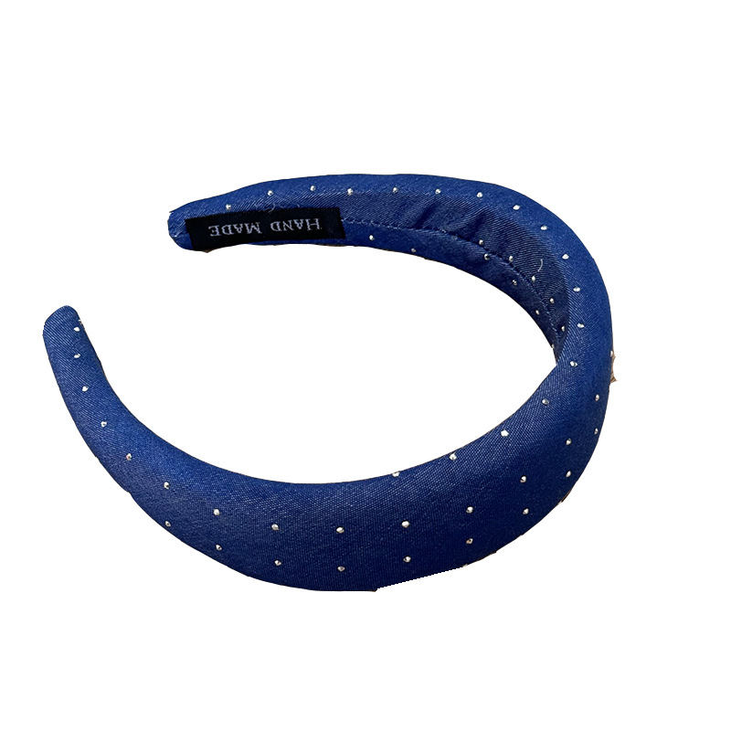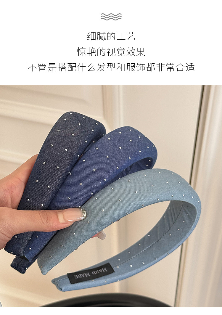 韩版牛仔蓝水钻发箍女宽版时髦高颅顶头箍网红外出百搭发卡发饰品 投诉