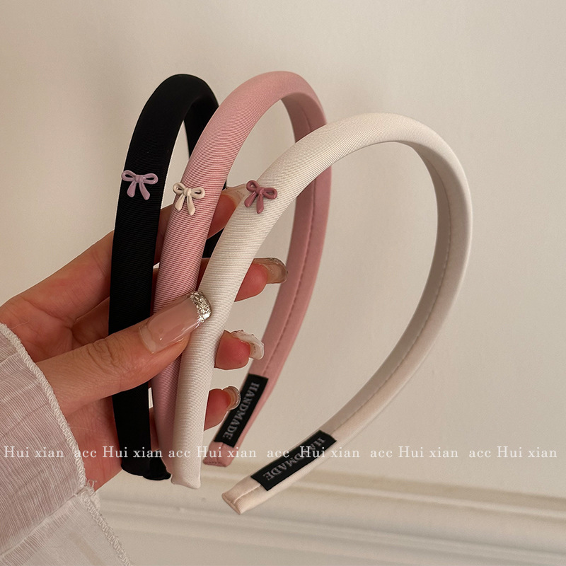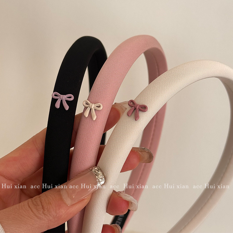 早春奶油彩色蝴蝶结细窄发箍芭比粉色头箍高颅顶优雅气质发饰女生
