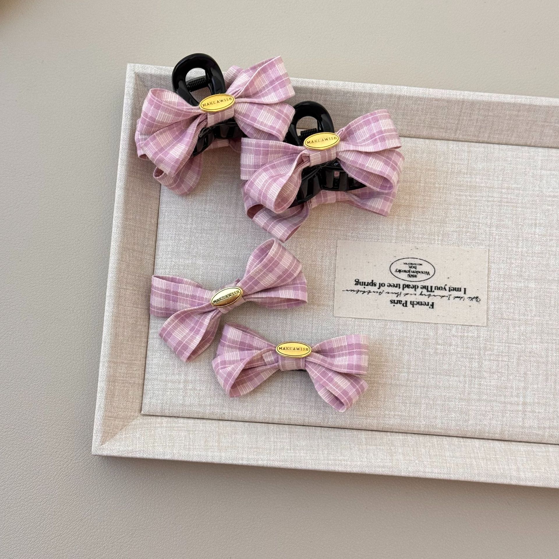 复古简约经典粉色少女系列发夹蝴蝶结抓夹侧边刘海碎发公主发夹子