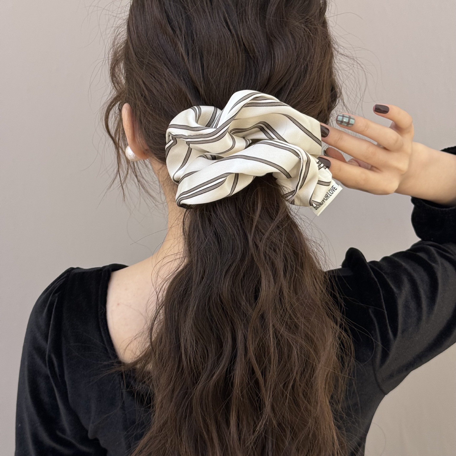 法式港风条纹发绳大肠发圈头花头饰头绳丸子头发饰2025新款高级感