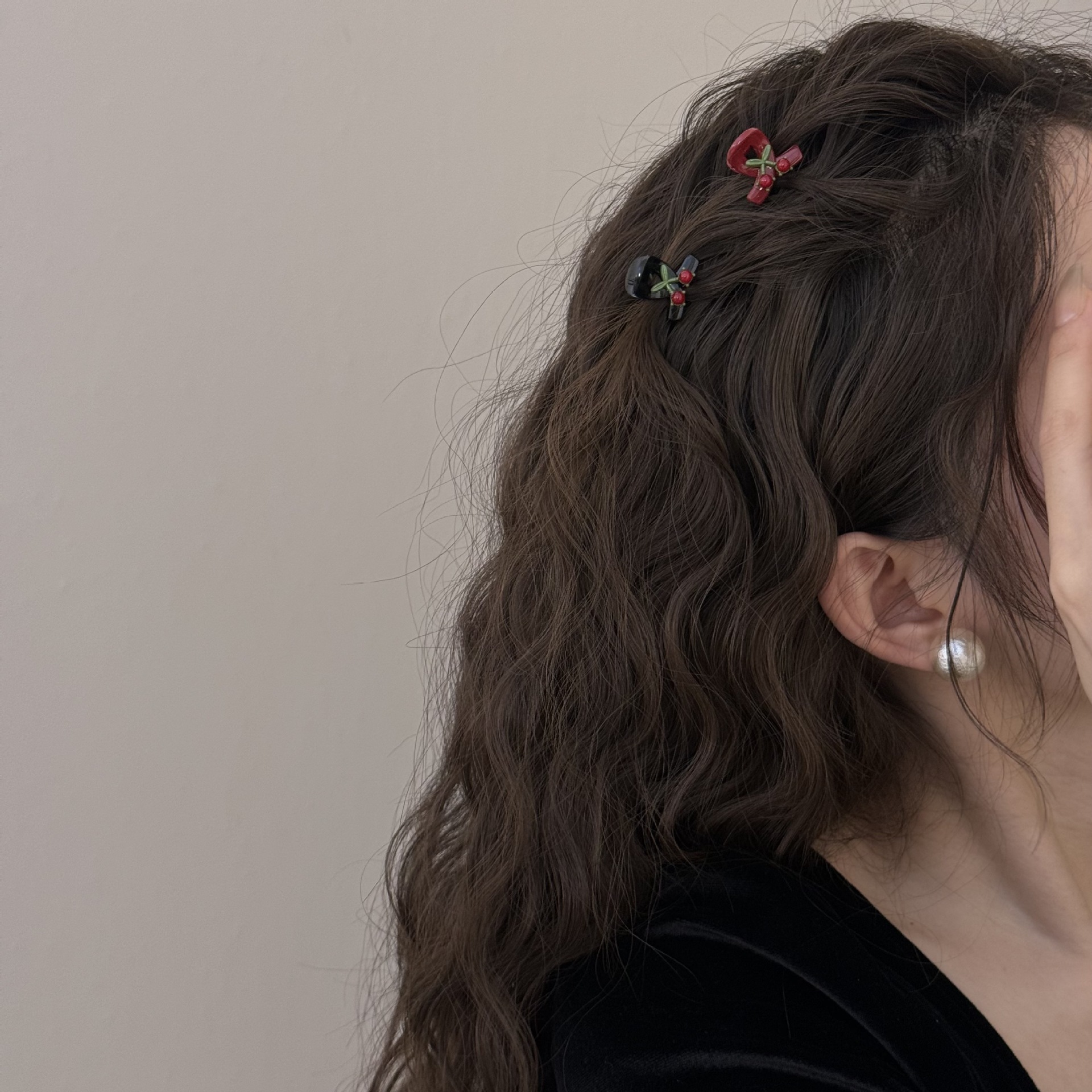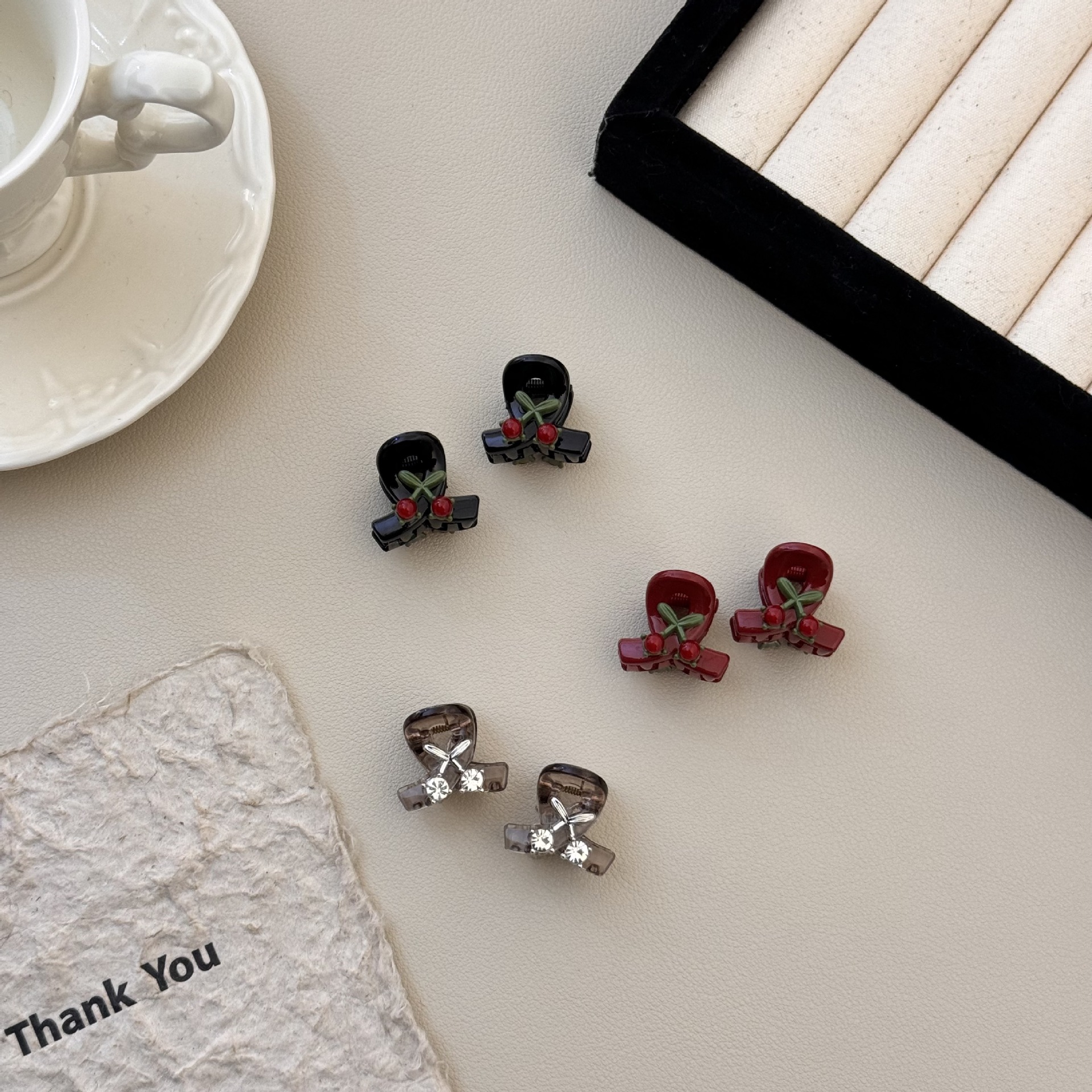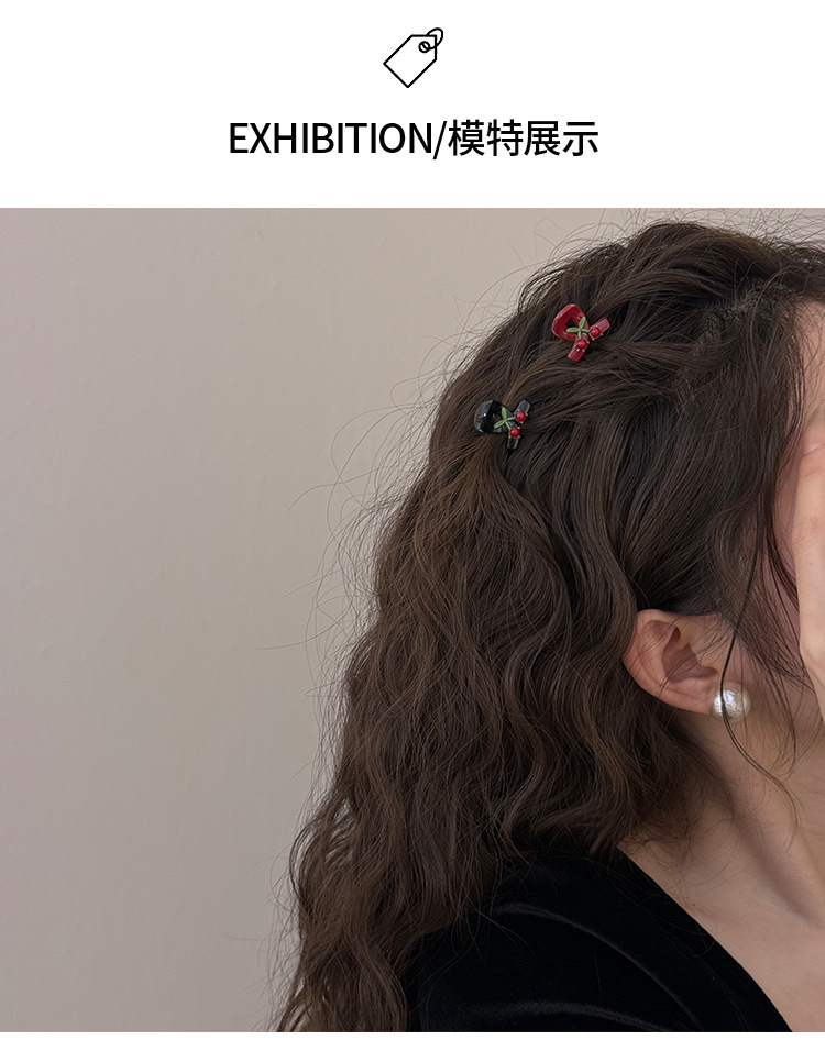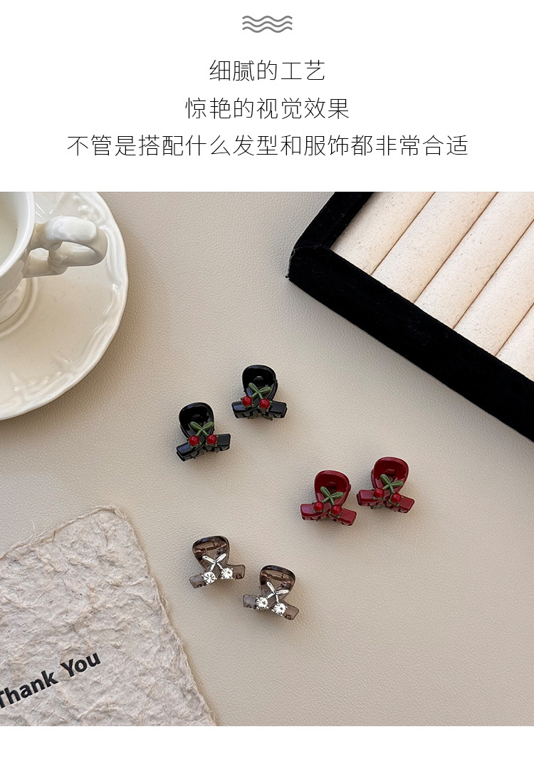 法式少女轻奢闪钻樱桃红色迷你小号刘海发抓精致气质小香风抓夹女 投诉