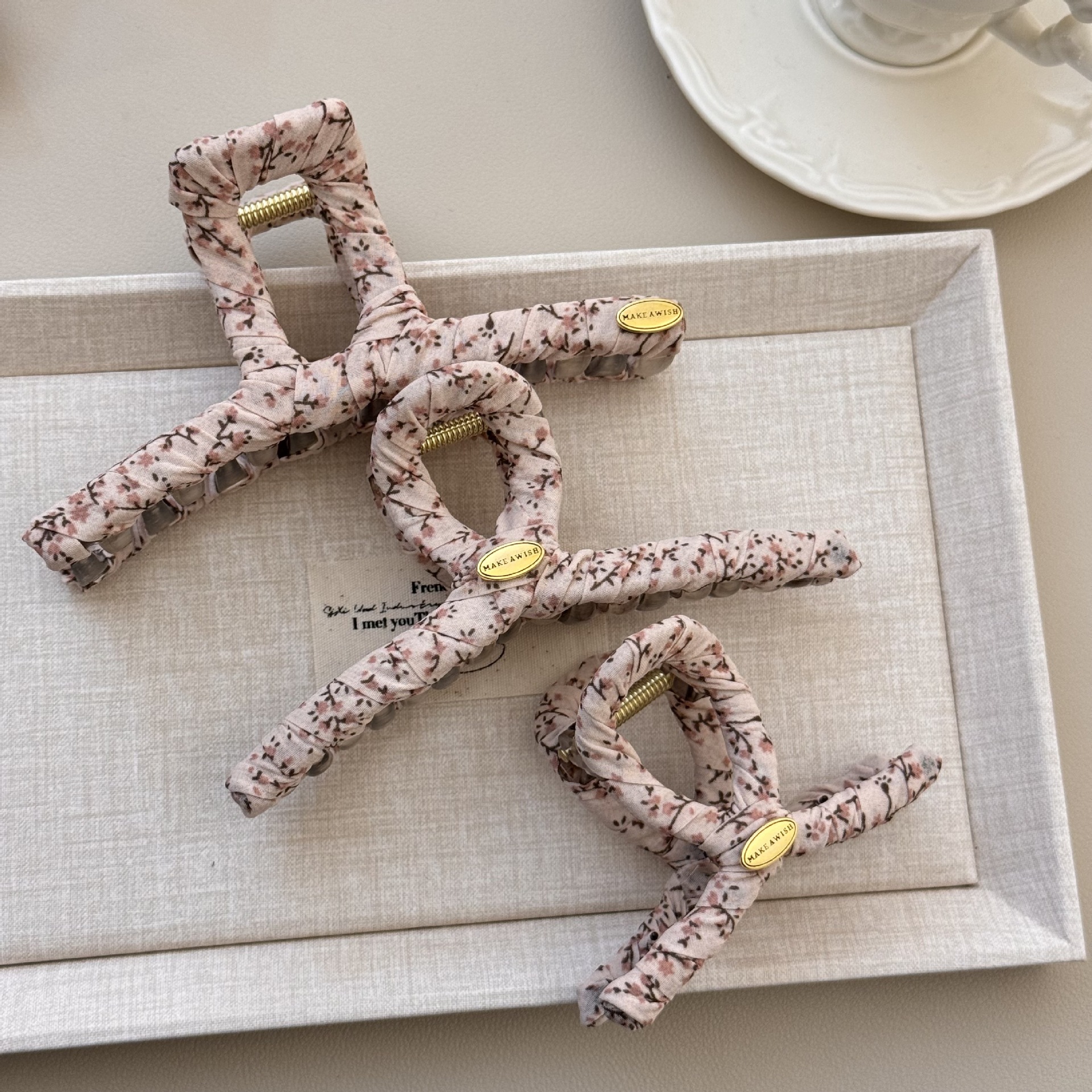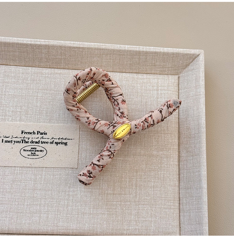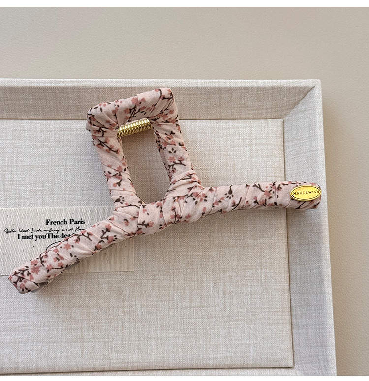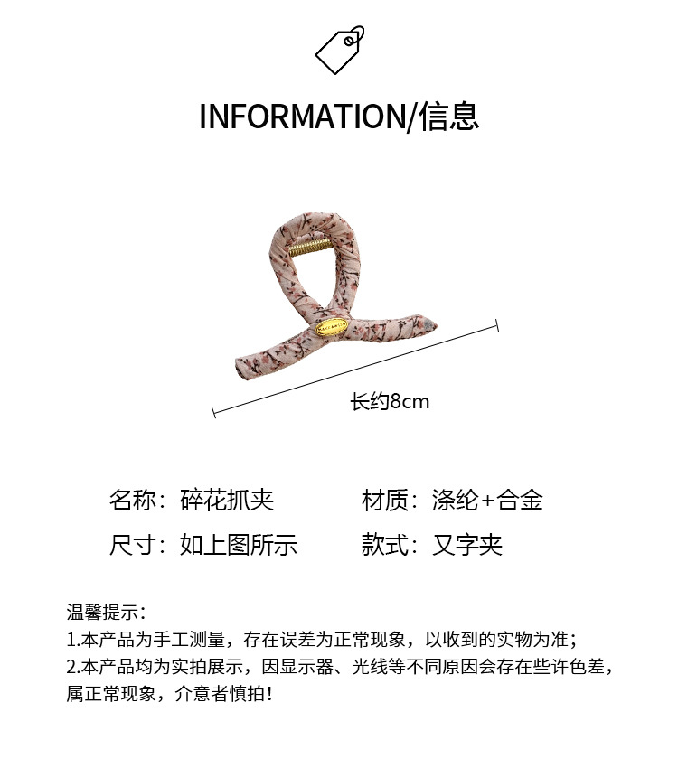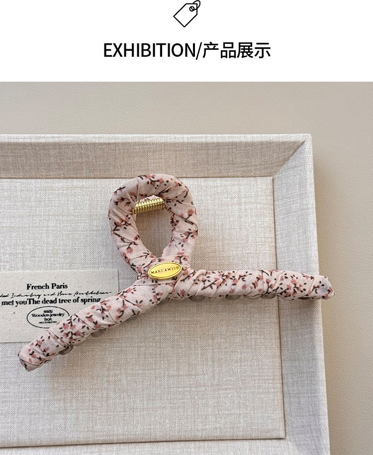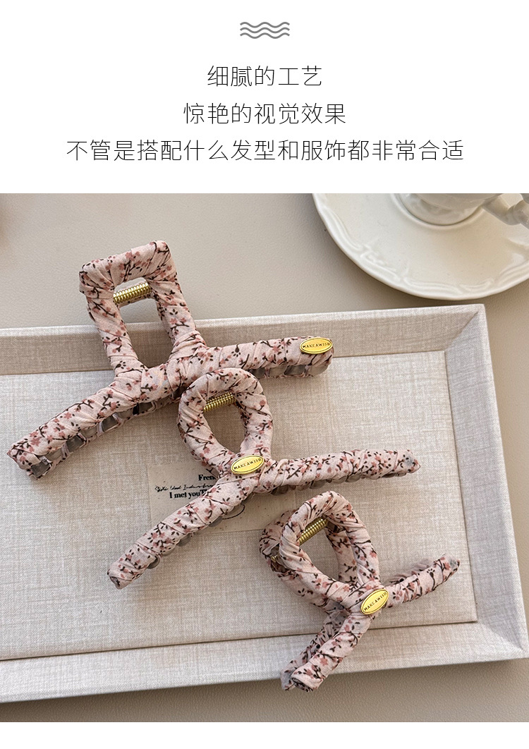 奶油色碎花简约发夹女可爱发饰发夹韩国韩系碎花布艺缠绕大号抓夹 投诉