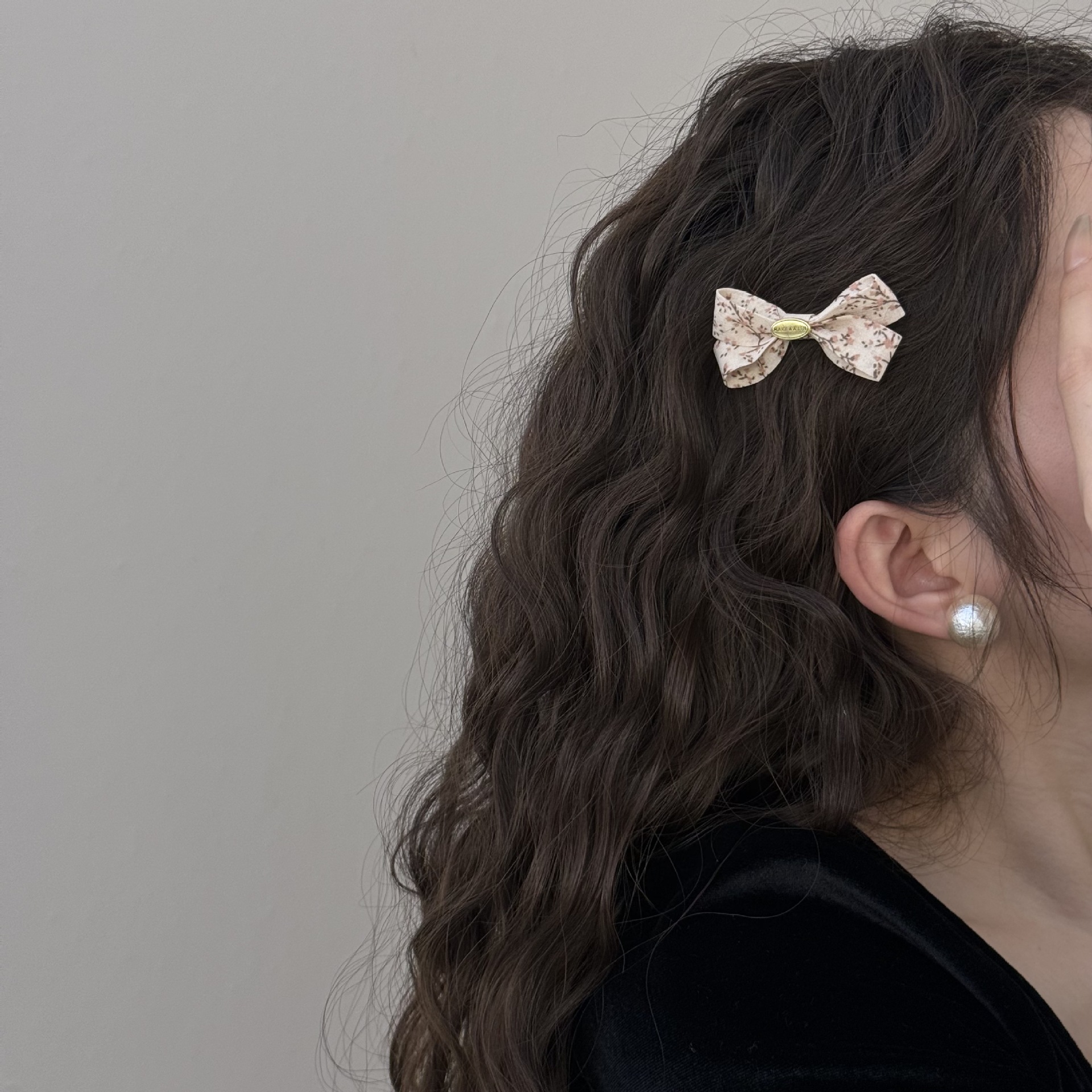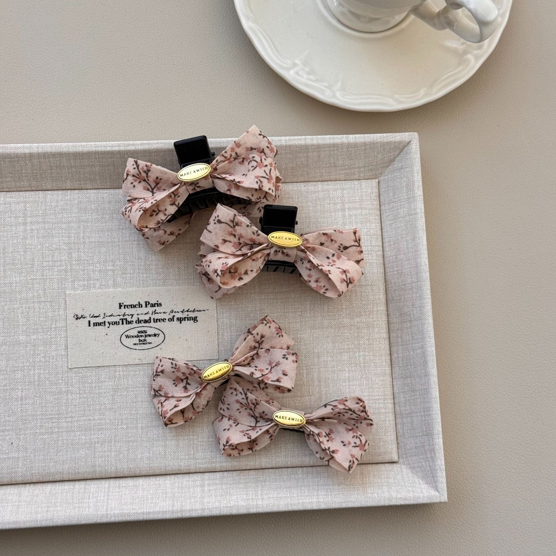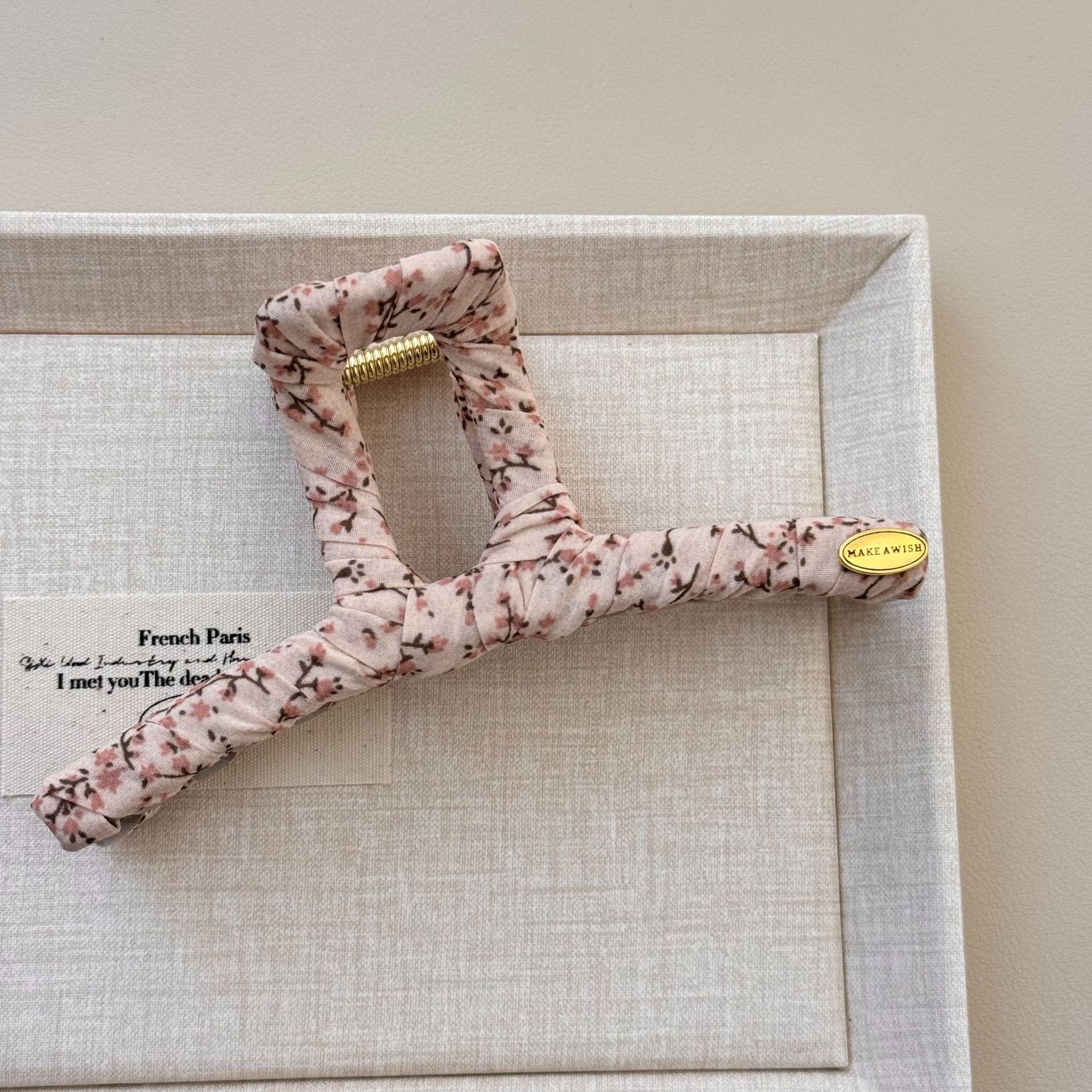 奶油色碎花简约发夹女可爱发饰发夹韩国韩系碎花布艺缠绕大号抓夹 投诉