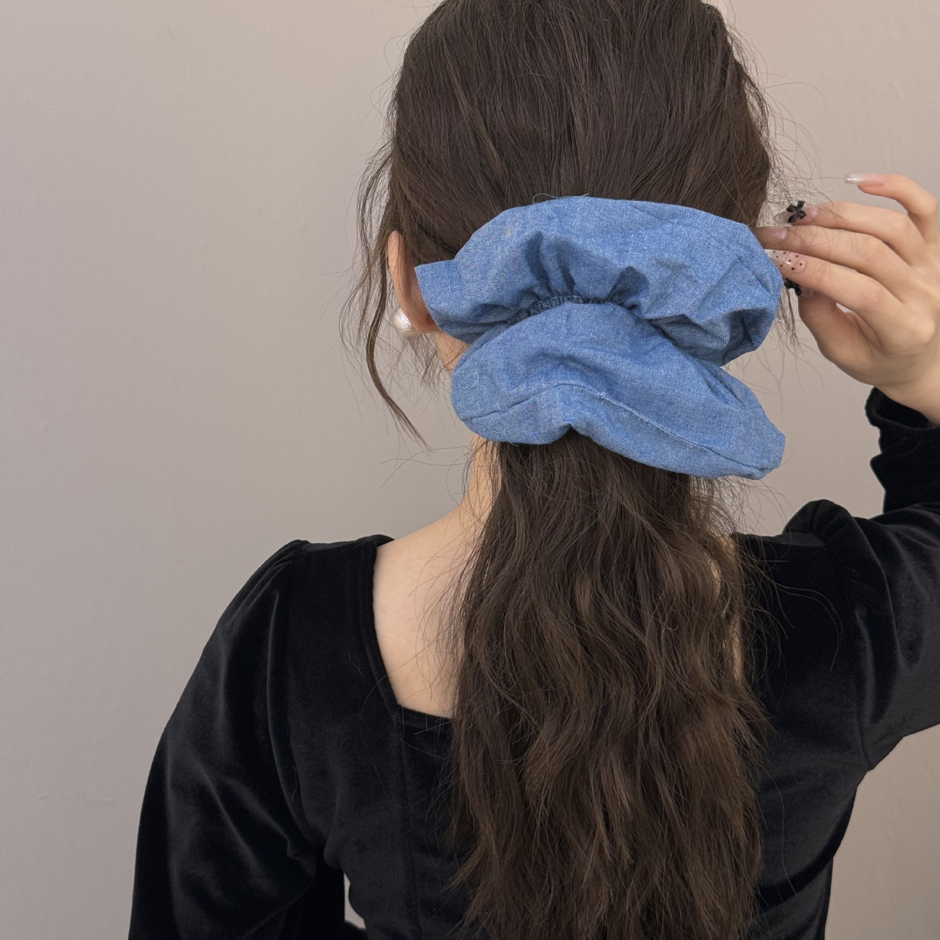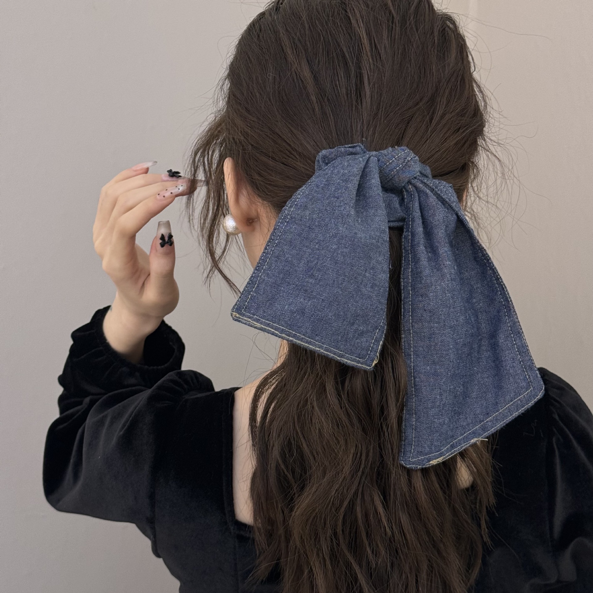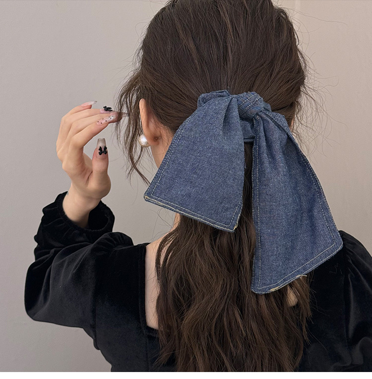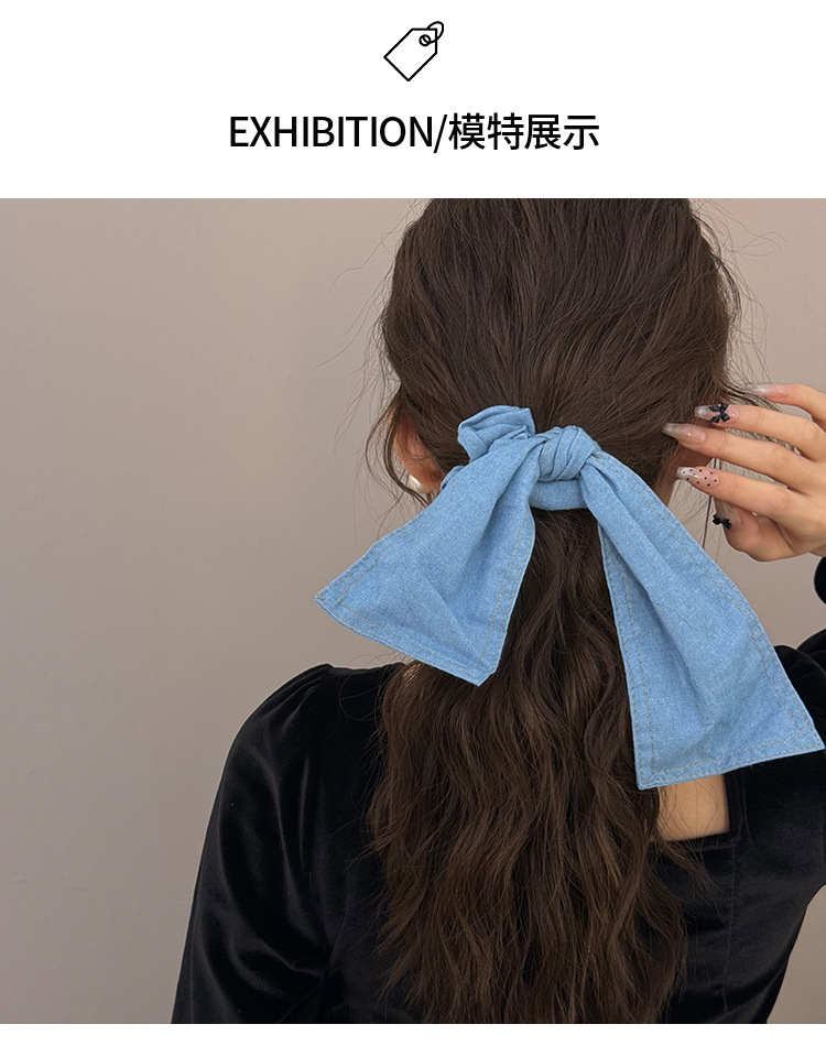 百搭慵懒大号牛仔飘带蝴蝶结发圈高级感气质扎头发绳丸子头发饰女