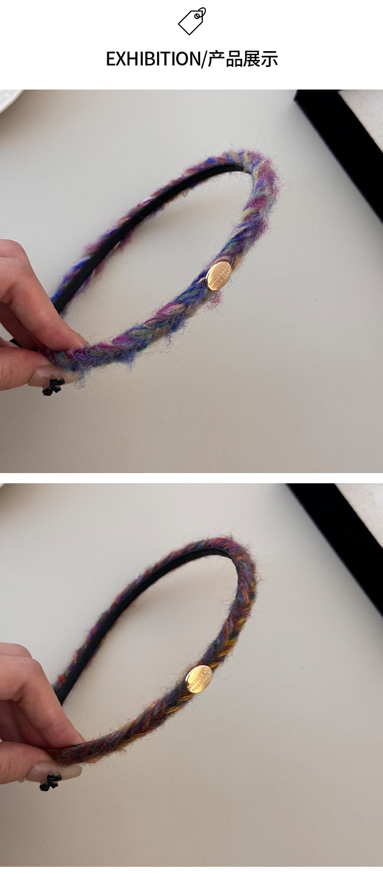 午后甜茶~ 复古紫色毛绒麻花发箍女秋冬季高级感外出百搭头饰头箍 投诉