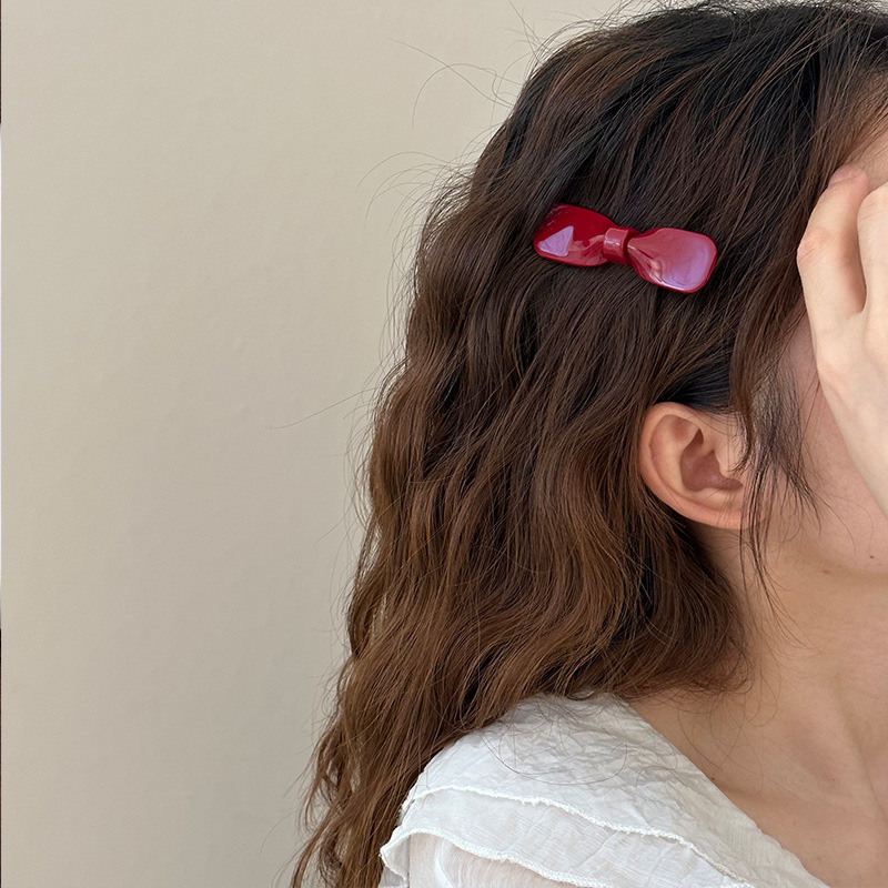 甜美风韩系蝴蝶结发夹公主侧边刘海夹气质醋酸鸭嘴夹前额发卡头饰