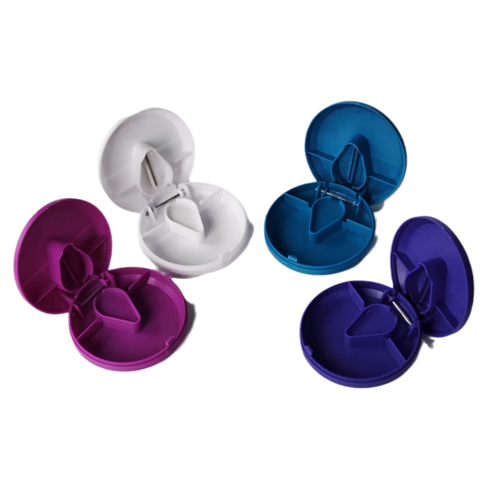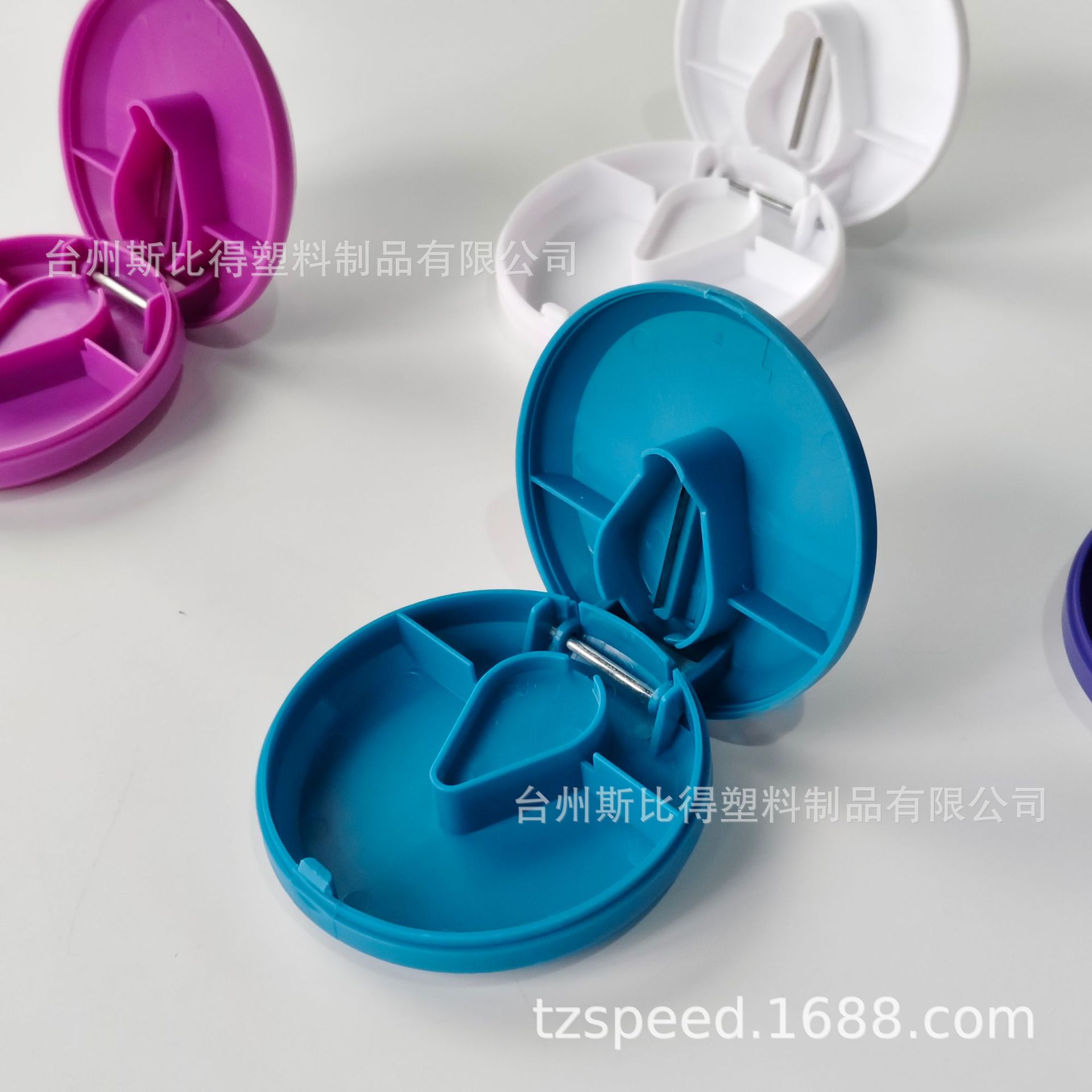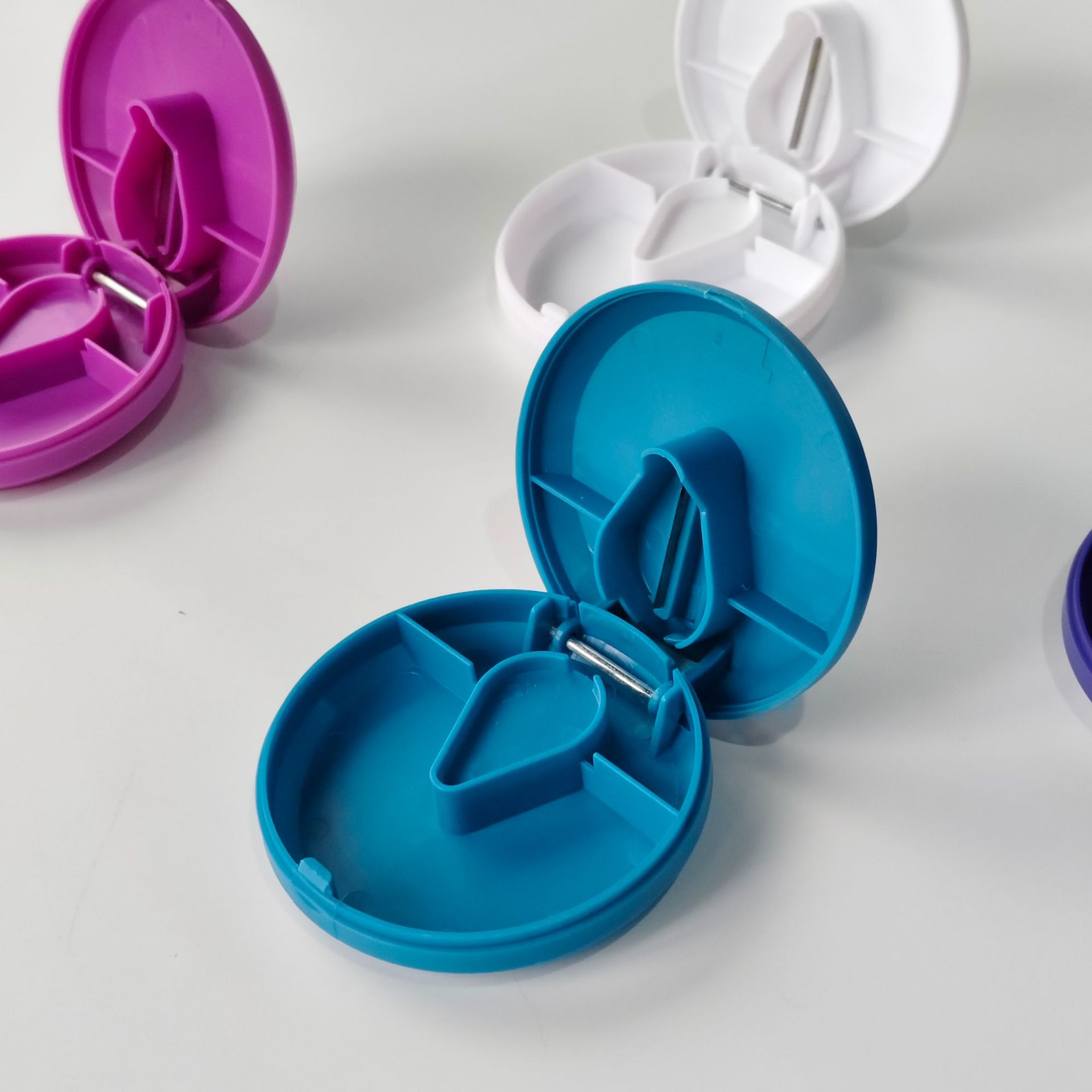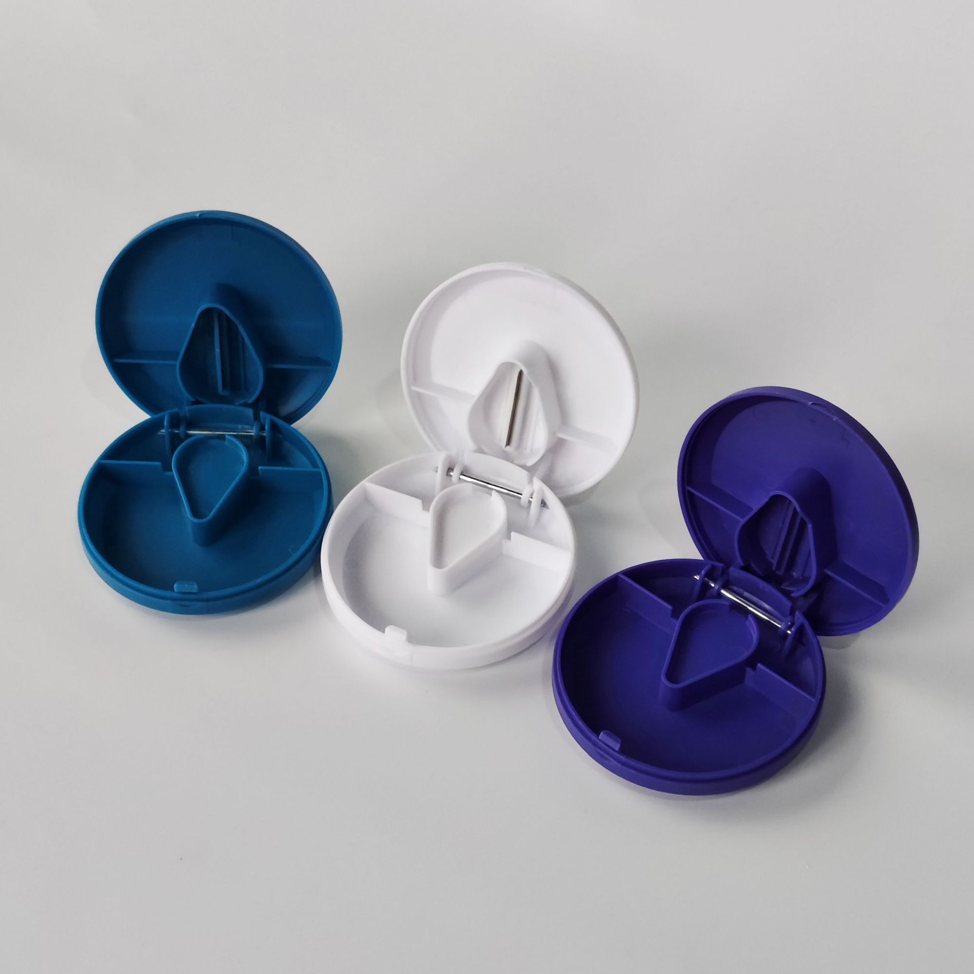 可印刷LOGO带刀片药盒 扁圆形可切分割药盒 圆扁形分割药片药盒