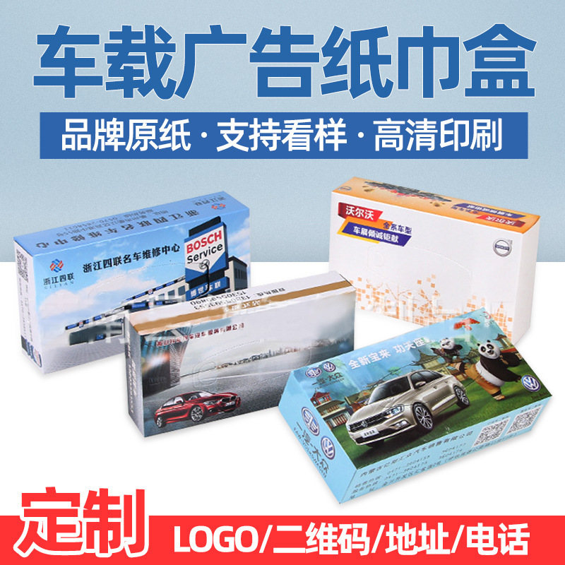 车载抽纸盒装创意汽车广告纸巾盒公司企业纸巾设计抽纸盒彩印定制
