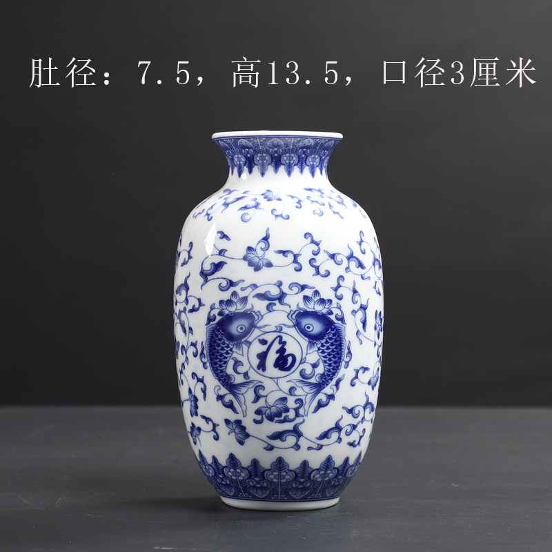 陶瓷青花花瓶博古架玄关摆件客厅桌面装饰品中国风插干花小花瓶 投诉