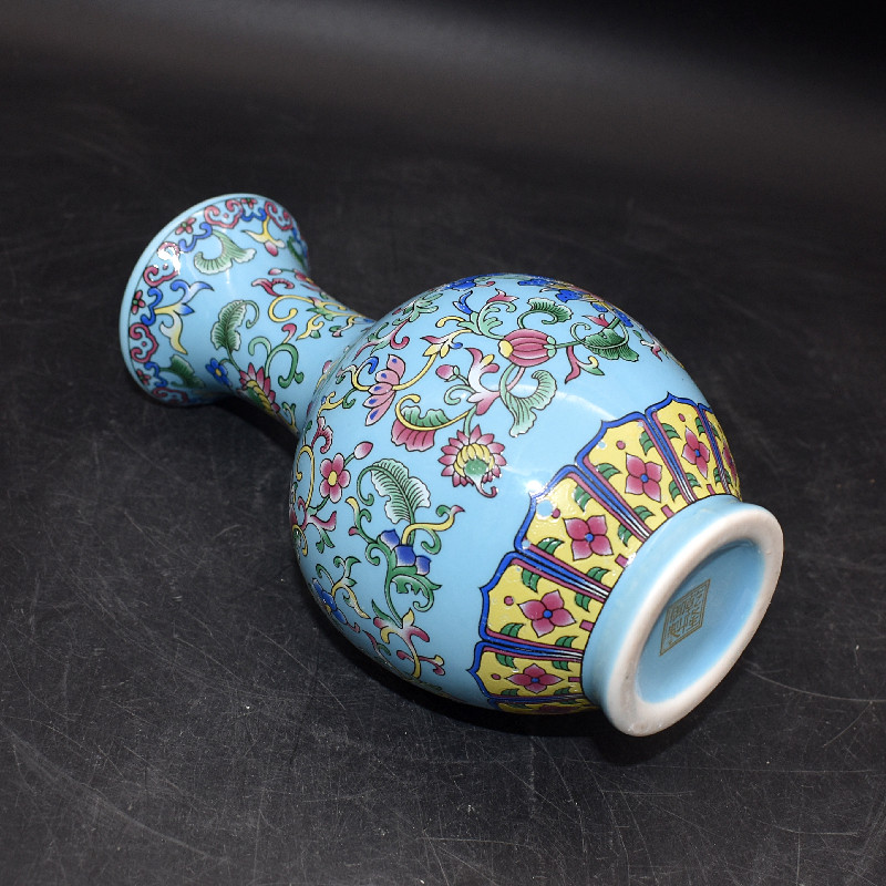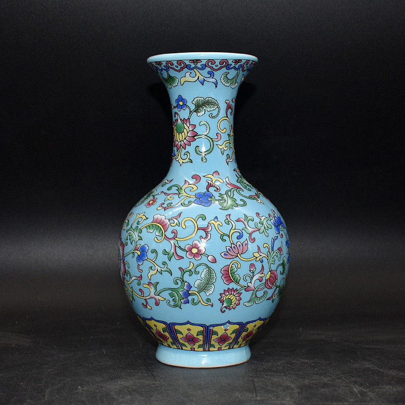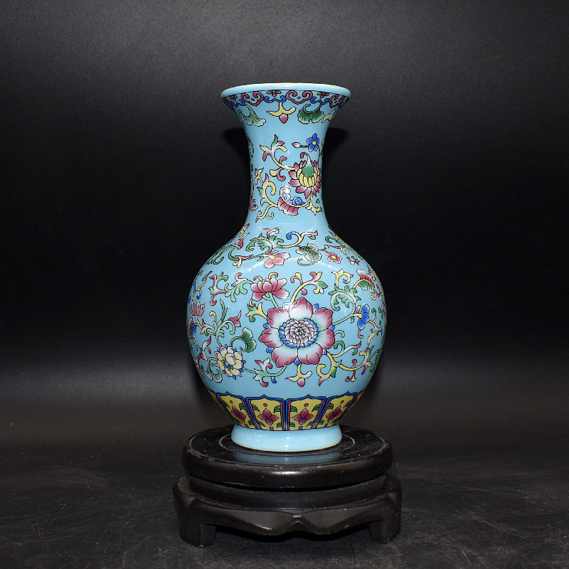 清代中式珐琅彩花纹赏瓶古董老物件旧货处理仿古瓷器干花水养摆件