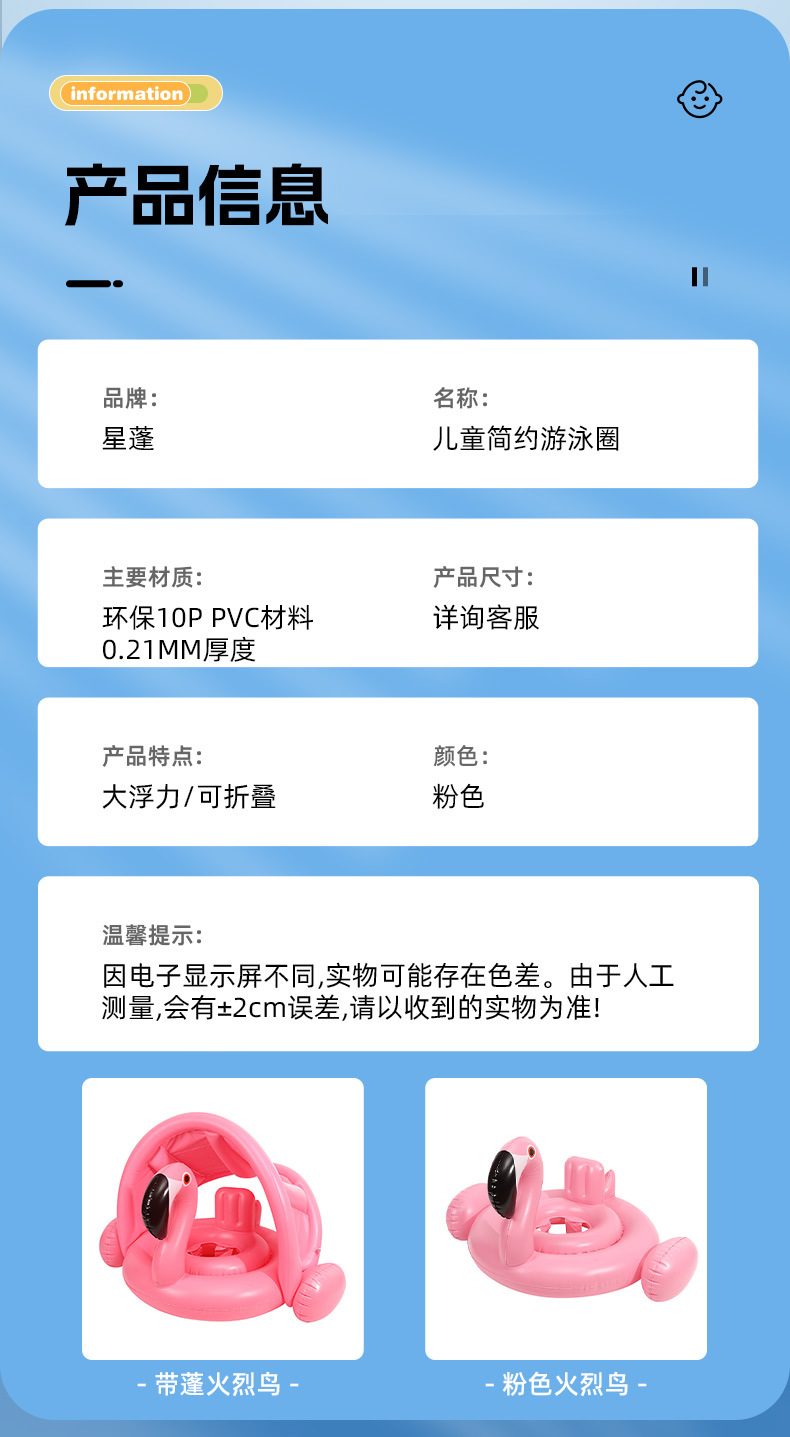 儿童游泳圈夏季水上用品遮阳火烈鸟游泳坐圈防晒座圈pvc充气泳圈 投诉