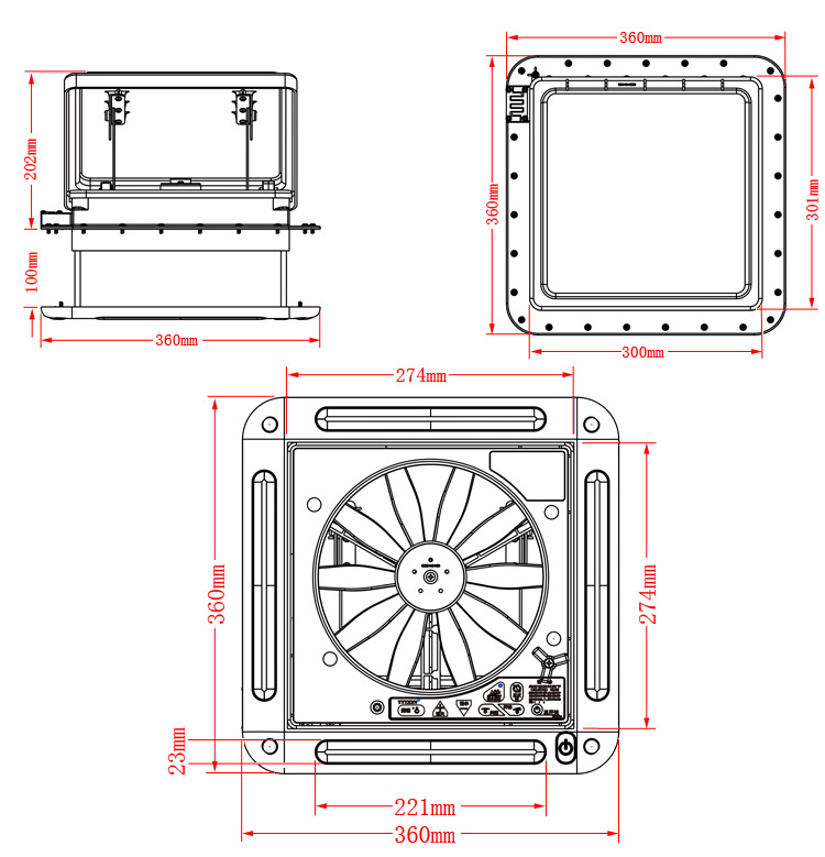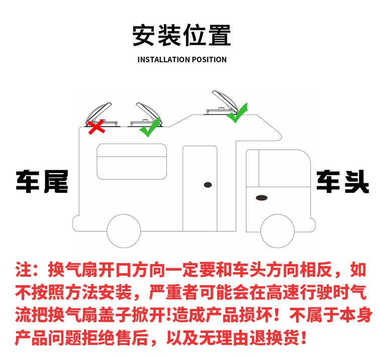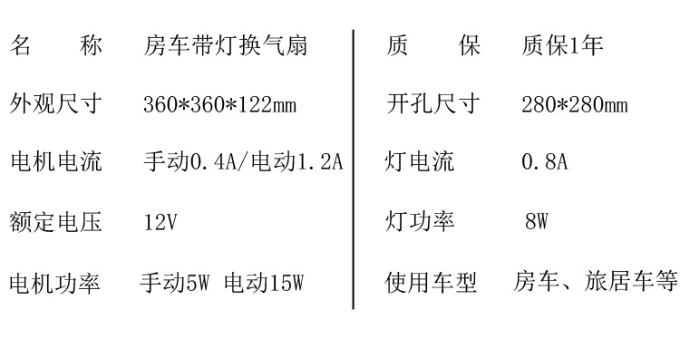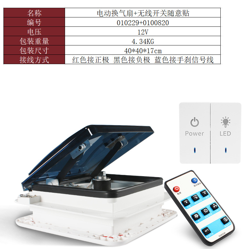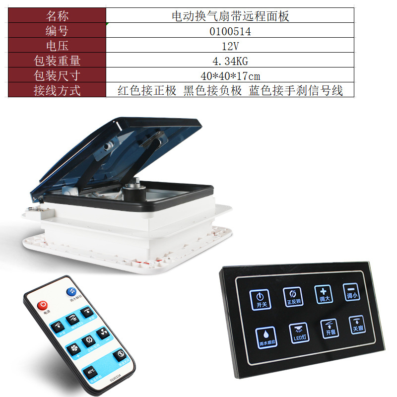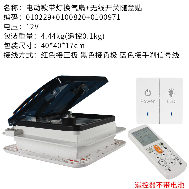 适用于,露营车,房车12V天窗换气扇 旅居车24V排气扇 防虫带雨感双向进出风扇带灯