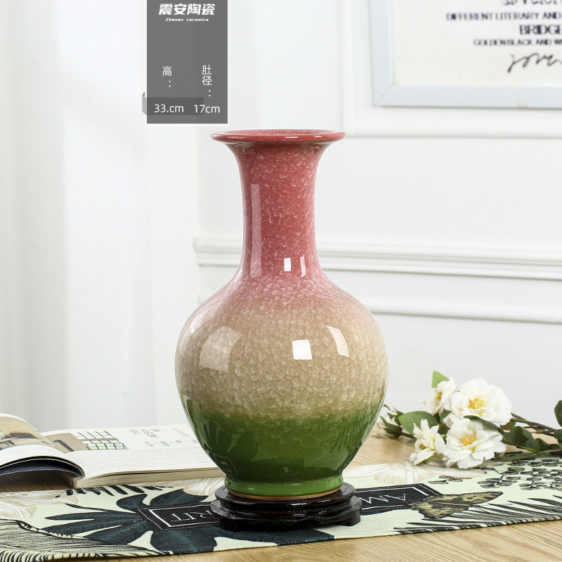 景德镇陶瓷器仿古官窑三色中式家居插花花瓶桌面工艺品装饰品摆件