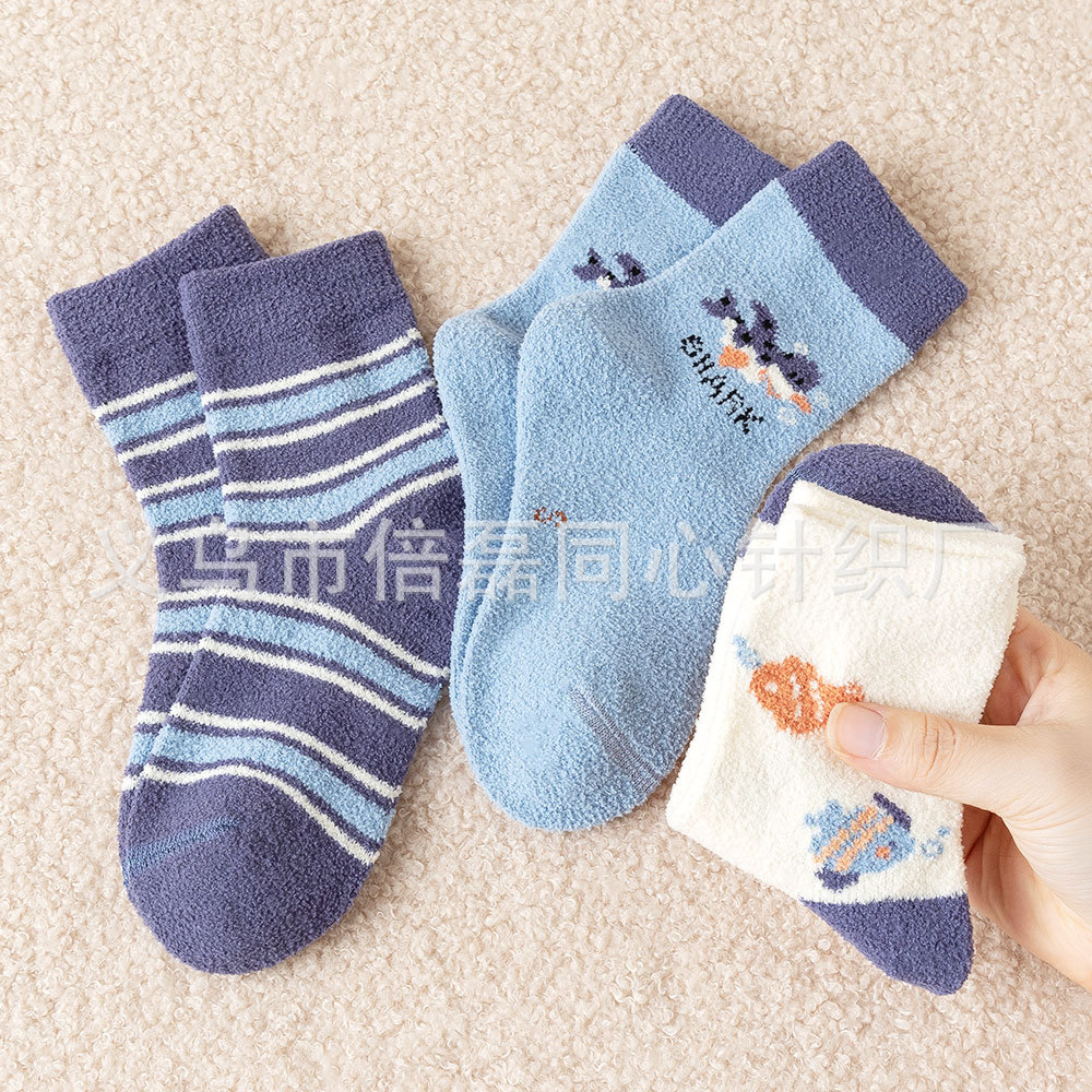 儿童袜子女春秋韩系女童中大童毛绒袜男童百搭款秋冬潮流冬季中筒