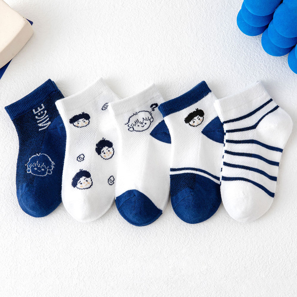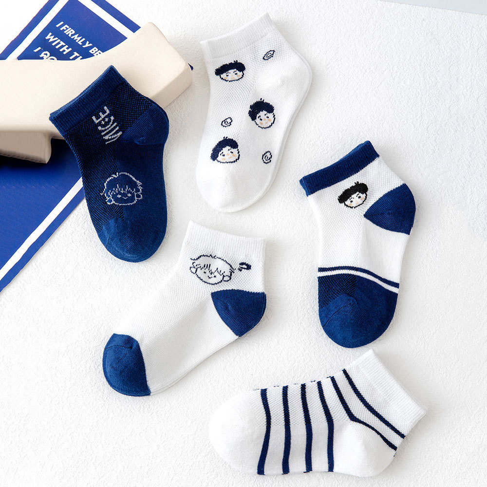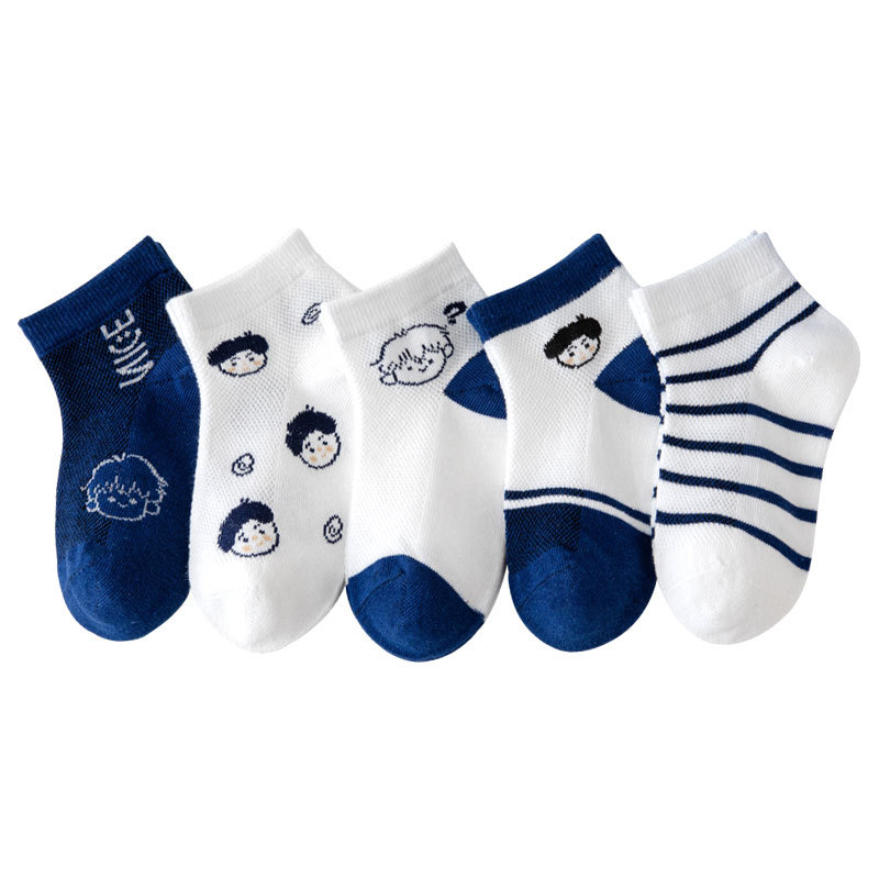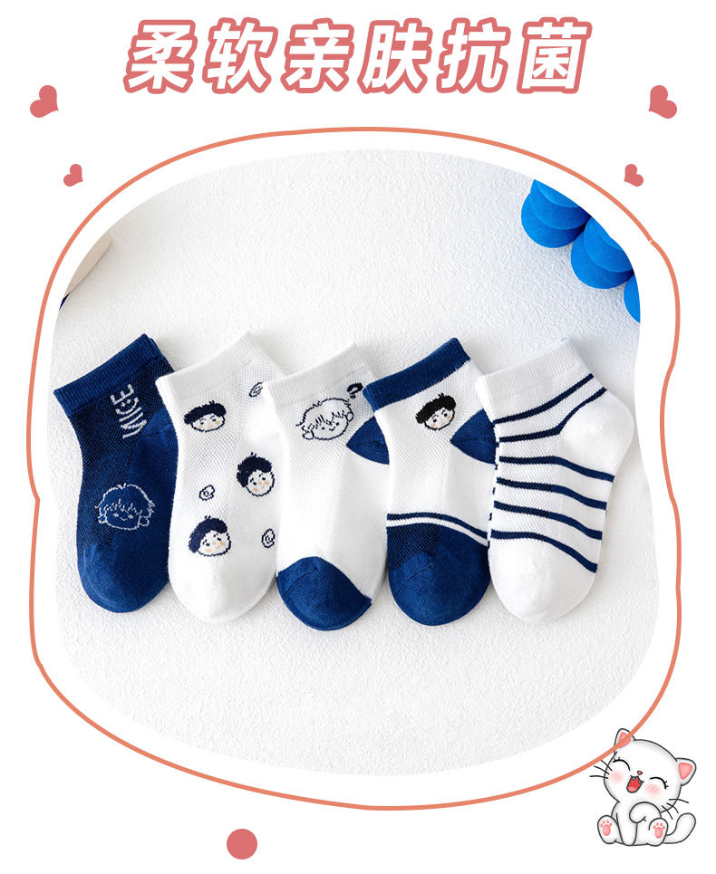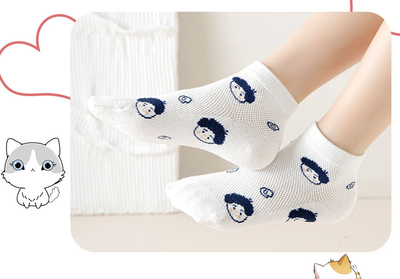儿童袜子批发春夏季新款男童袜子薄款透气网眼袜卡通条纹棉袜短袜 投诉