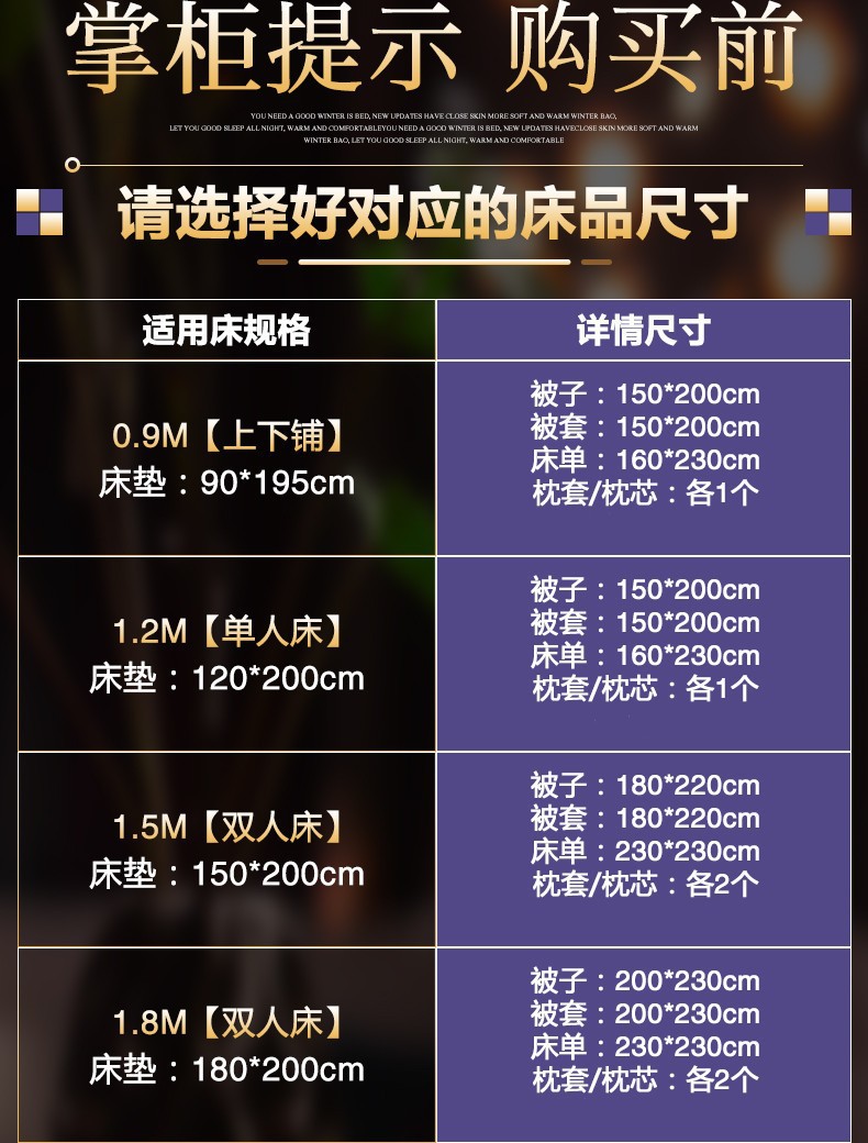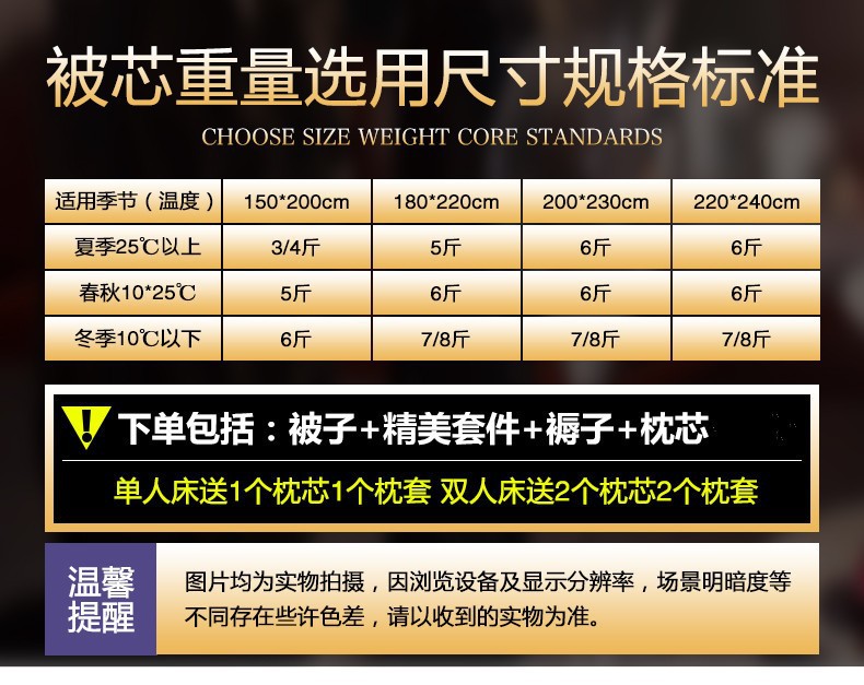 | 【1.2m床4斤褥垫】1.5*2.0m/3斤被(6件套) | ¥11500 | 99999套可售 |